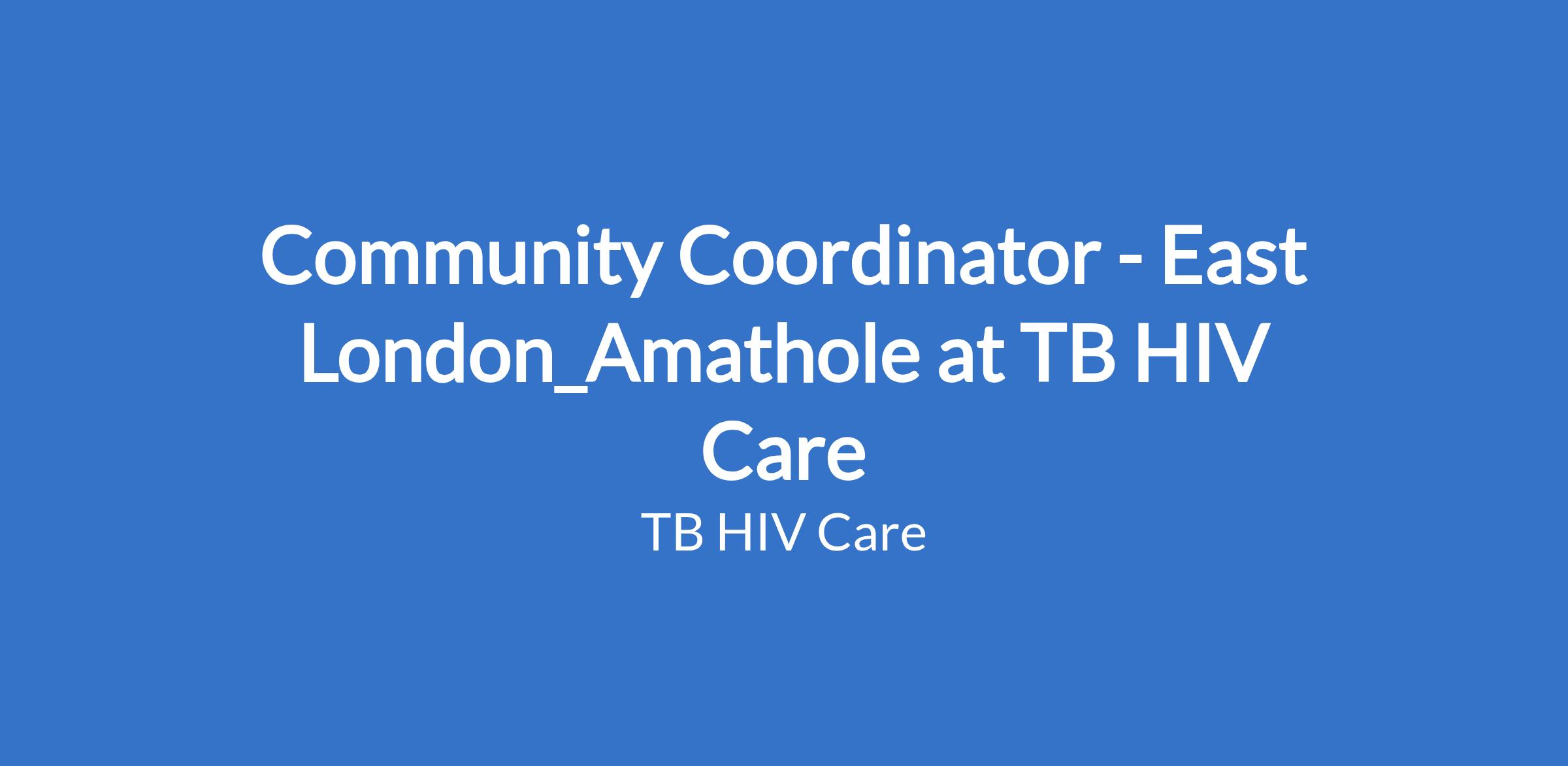 Community Coordinator - East London_Amathole at TB HIV Care