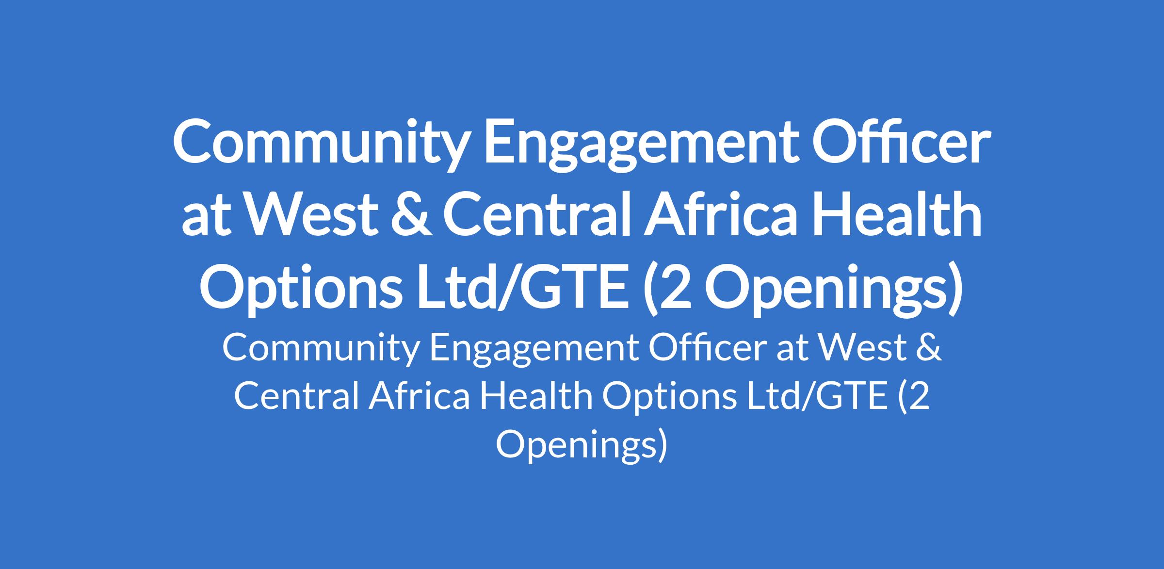 West & Central Africa Health Options Ltd/GTE is recruiting to fill the position of: Community Engagement Officer. The position is located in Gombe and Borno States. Interested candidates should possess relevant qualifications.