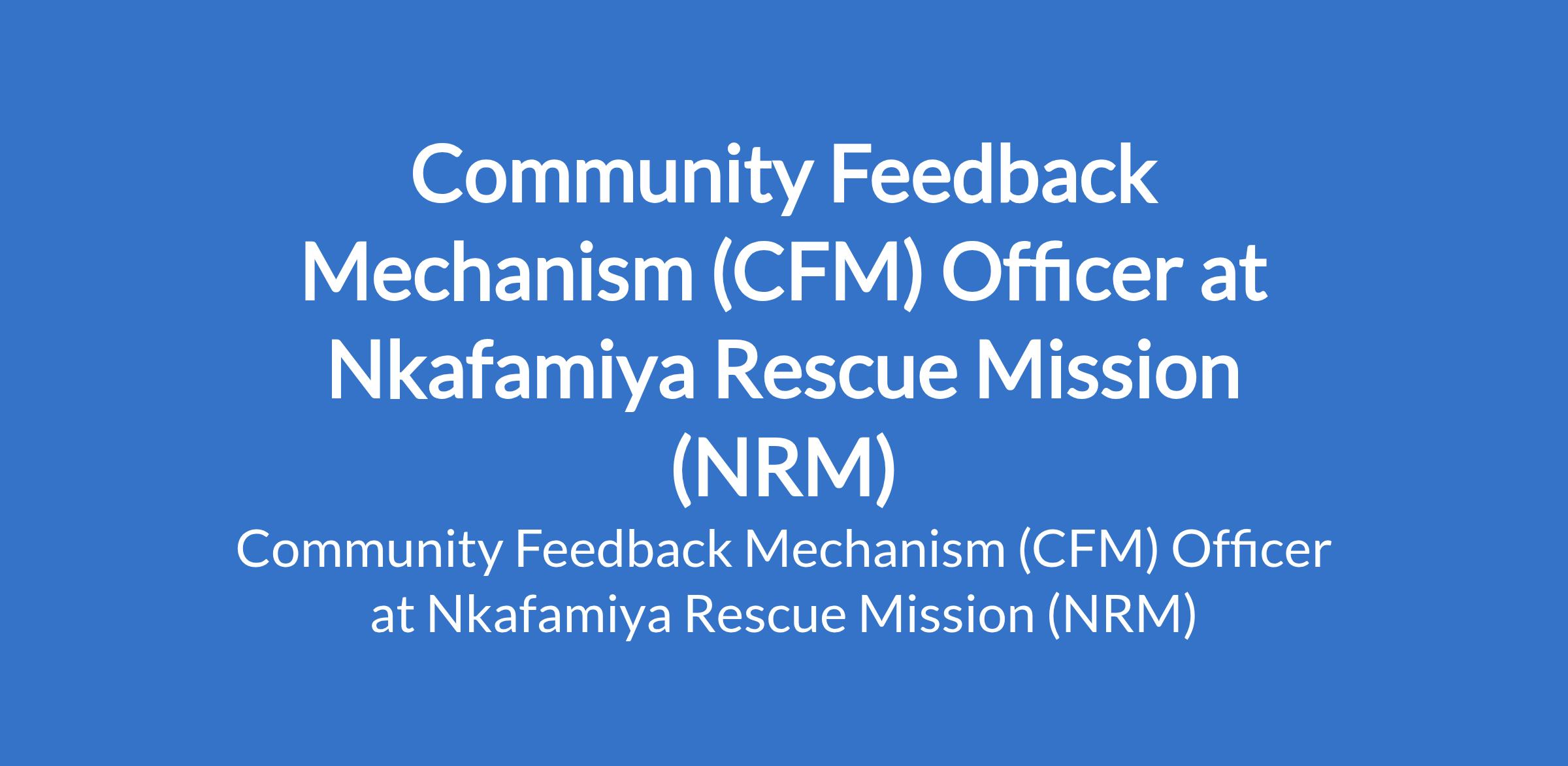 Nkafamiya Rescue Mission (NRM) is recruiting to fill the position of: Community Feedback Mechanism (CFM) Officer. The position is located in Borno State. Interested candidates should possess relevant qualifications with demonstrable experience in humanitarian or development programs, excellent communication and teamwork skills, and a commitment to community empowerment and protection principles.