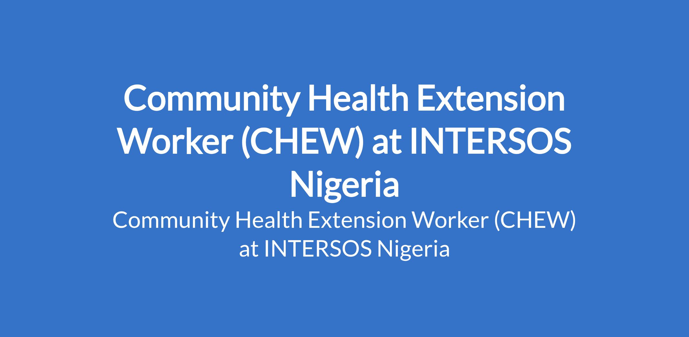 INTERSOS Nigeria is recruiting to fill the position of: Community Health Extension Worker (CHEW). The position is located in Monguno, Borno State. Interested candidates should possess a Diploma / Certificate in CHEW, with a minimum of 2 years relevant work experience in the humanitarian sector especially in fragile and unstable environments.