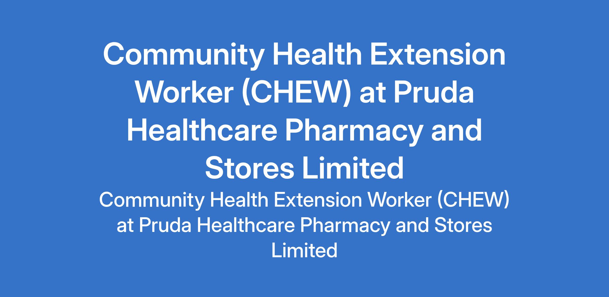 Pruda Healthcare Pharmacy and Stores Limited is recruiting to fill the position of: Community Health Extension Worker (CHEW). The position is located in Dawaki, Abuja (FCT). Salary: N50,000 - N100,000 per month. Interested candidates should possess relevant qualifications and experience, and must reside within the environs of Dawaki, FCT Abuja.