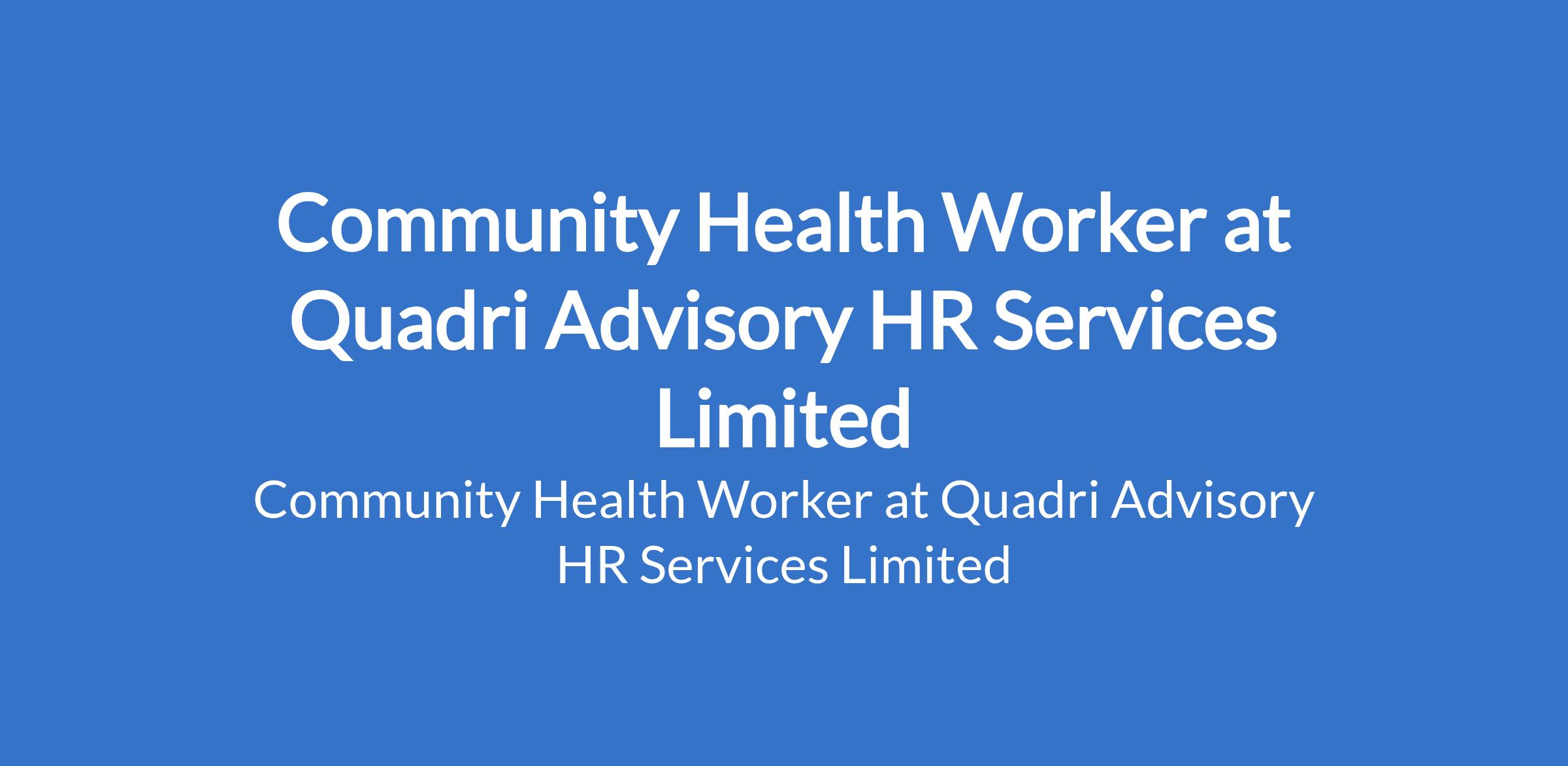 Quadri Advisory HR Services Limited is recruiting to fill the position of: Community Health Worker. The position is located in Lagos State. Interested candidates should have a Bachelors Degree in Social Work or a related field with Proven work experience as a Community Health Worker or similar role.