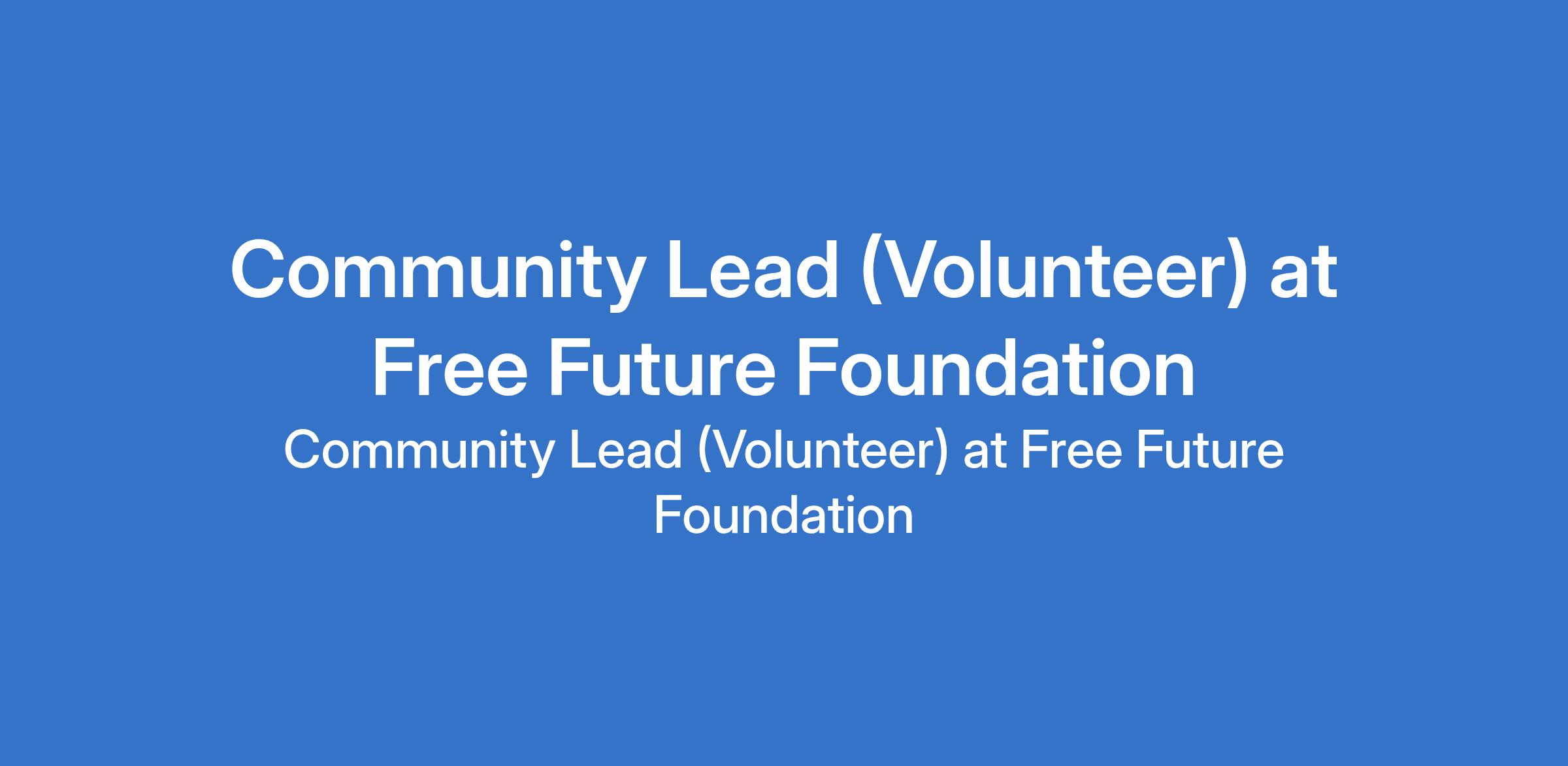 Community Lead (Volunteer) at Free Future Foundation