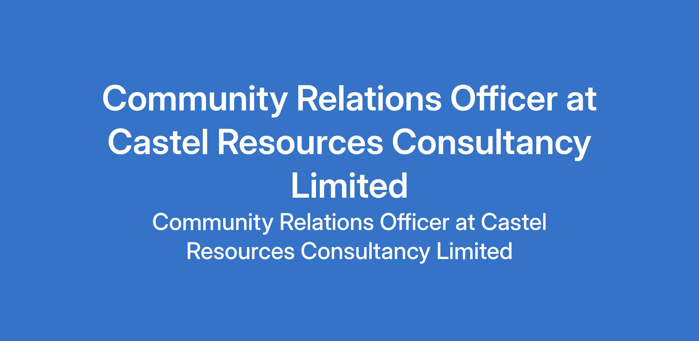 Castel Resources Consultancy Limited is recruiting to fill the position of: Community Relations Officer. The position is located in Port Harcourt, Rivers State. Salary: N800,000 - N1,000,000 monthly. The Community Relations Officer (CRO) serves as a bridge between the company and the local community, fostering positive relationships, promoting Corporate Social Responsibility (CSR), and ensuring smooth communication with stakeholders. Interested candidates should possess a Bachelors Degree in Social Sciences, Public Relations, Communications, or related fields with 8 10 years of experience in community relations, CSR, or stakeholder engagement.