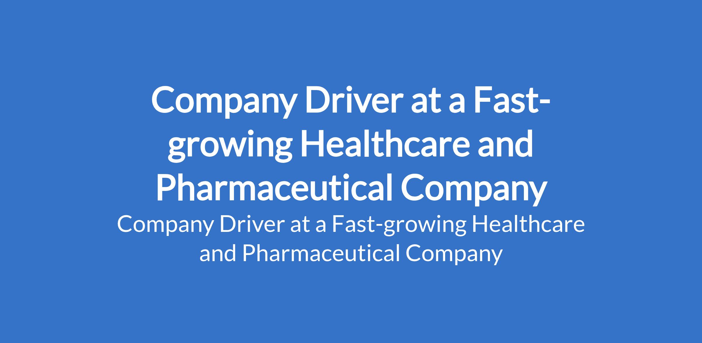 Company Driver at a Fast-growing Healthcare and Pharmaceutical Company