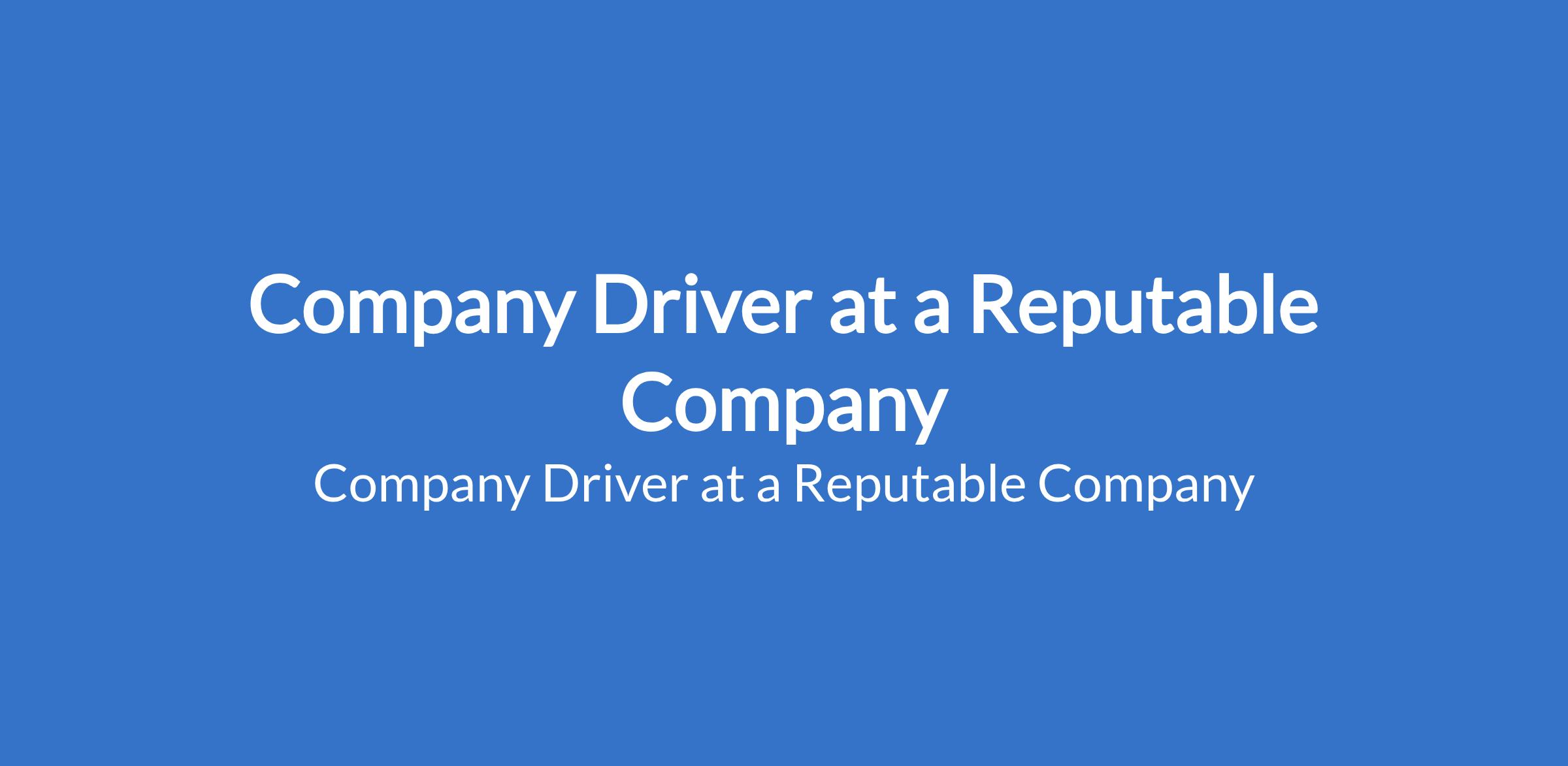 Company Driver at a Reputable Company