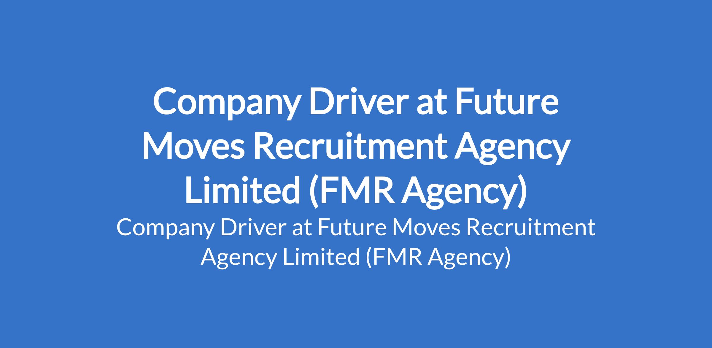 Future Moves Recruitment Agency Limited (FMR Agency) is recruiting to fill the position of: Company Driver. The position is located in Cele, Lagos State. Salary: N120,000 / month. Interested candidates should possess a minimum of SSCE or equivalent qualification, a valid drivers license with clean driving record, a LASDRI card and at least 3 years of driving experience.