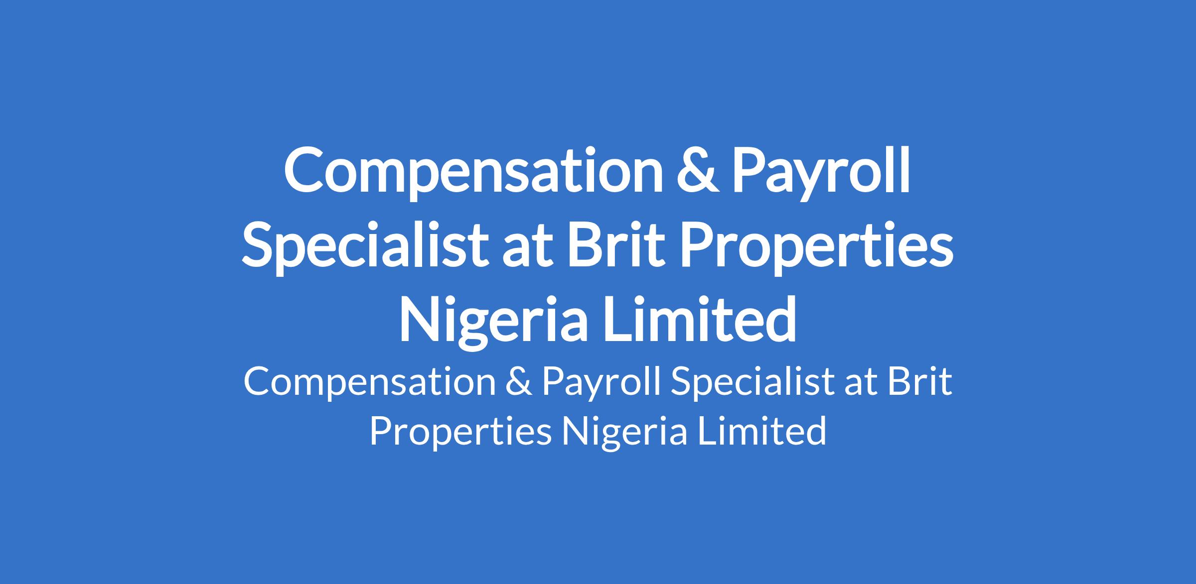 Compensation & Payroll Specialist at Brit Properties Nigeria Limited