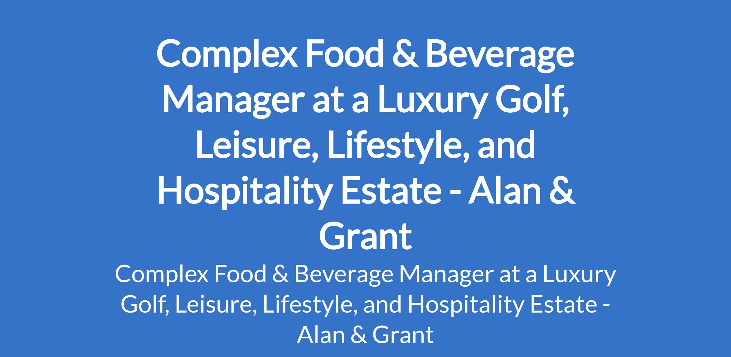 Alan & Grant - Our client, a luxury golf, leisure, lifestyle, and hospitality estate is recruiting to fill the position of: Complex Food & Beverage Manager. The position is located in Lagos State. Interested candidates should posses a Bachelor's Degree in Hospitality Management, Culinary Arts, or a related field with a minimum of 5 years of progressive experience in F&B management, preferably in a luxury hotel, resort, or high-end restaurant setting.