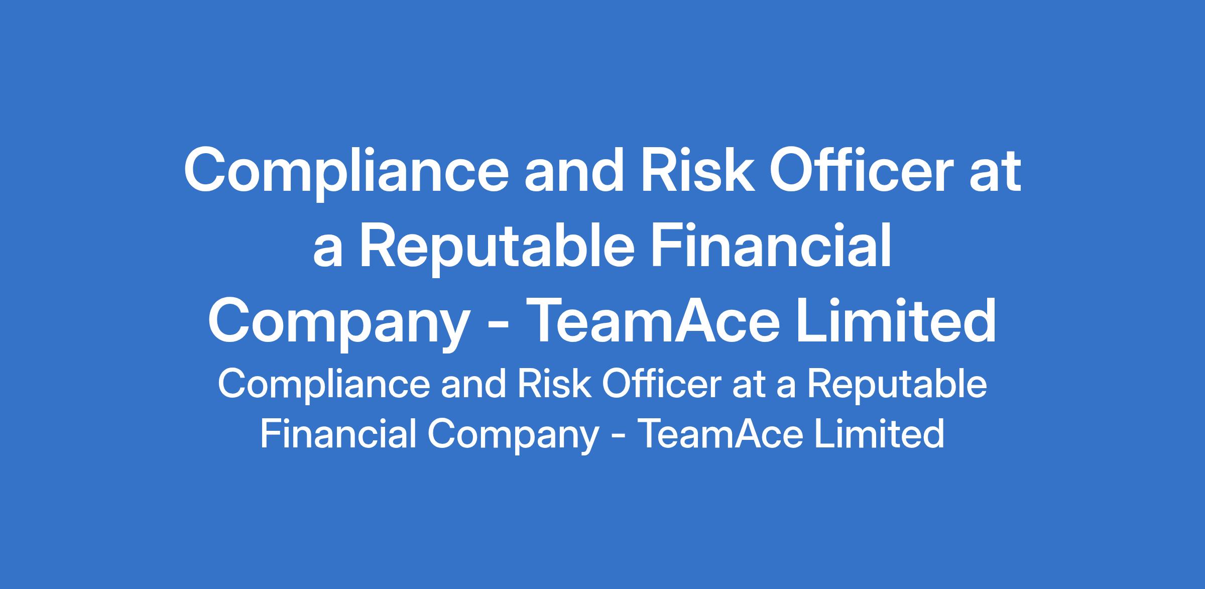 TeamAce Limited - Our client, a reputable organization in the financial services sector is recruiting to fill the position of: Compliance and Risk Officer. The position is located in Victoria Island, Lagos State. Salary: N455,000 - N846,000 monthly. Interested candidates should possess a Bachelors degree in Law, Finance, Accounting, Business Administration, Economics, or a related field. Masters degree or MBA is an added advantage with a minimum of 5 years experience in compliance, risk, or audit within a regulated financial institution or group structure, preferably a BDC.