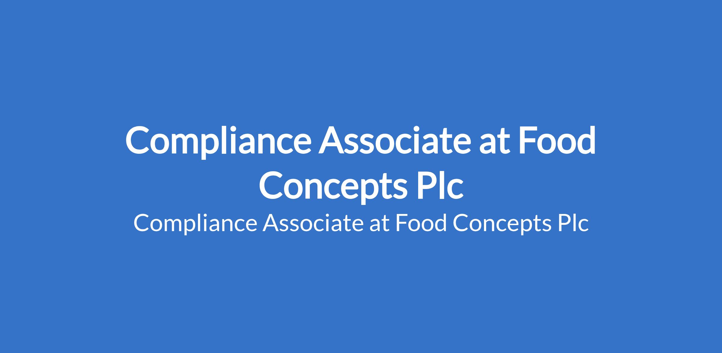 Food Concepts Plc is recruiting to fill the position of: Compliance Associate. The position is located in Lagos State. Interested candidates should possess a First Degree in Law, Finance, Business Administration or related areas with 5-6 years experience in a similar role, especially in the QSR/FMCG sector.