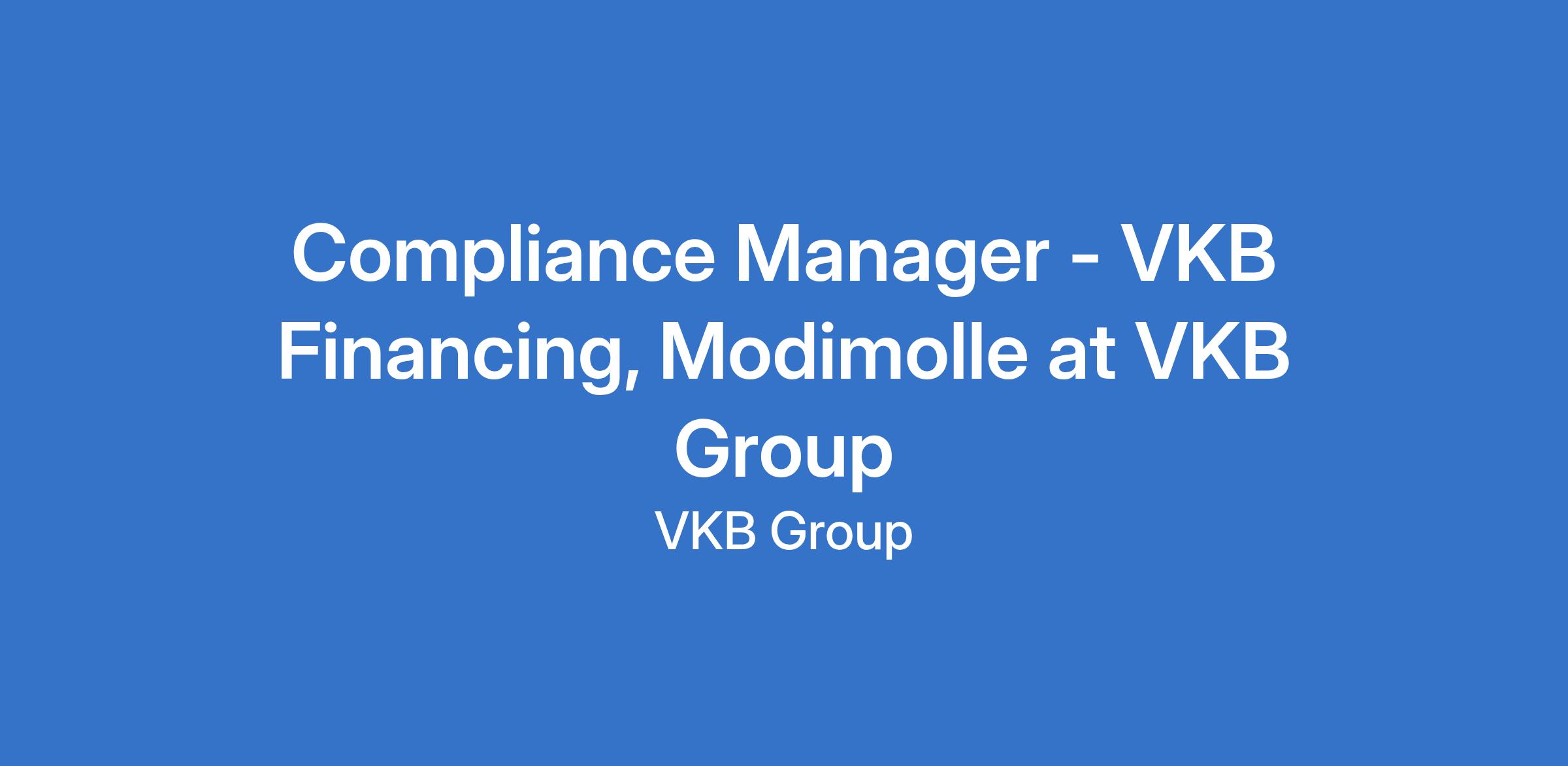 Compliance Manager - VKB Financing, Modimolle at VKB Group
