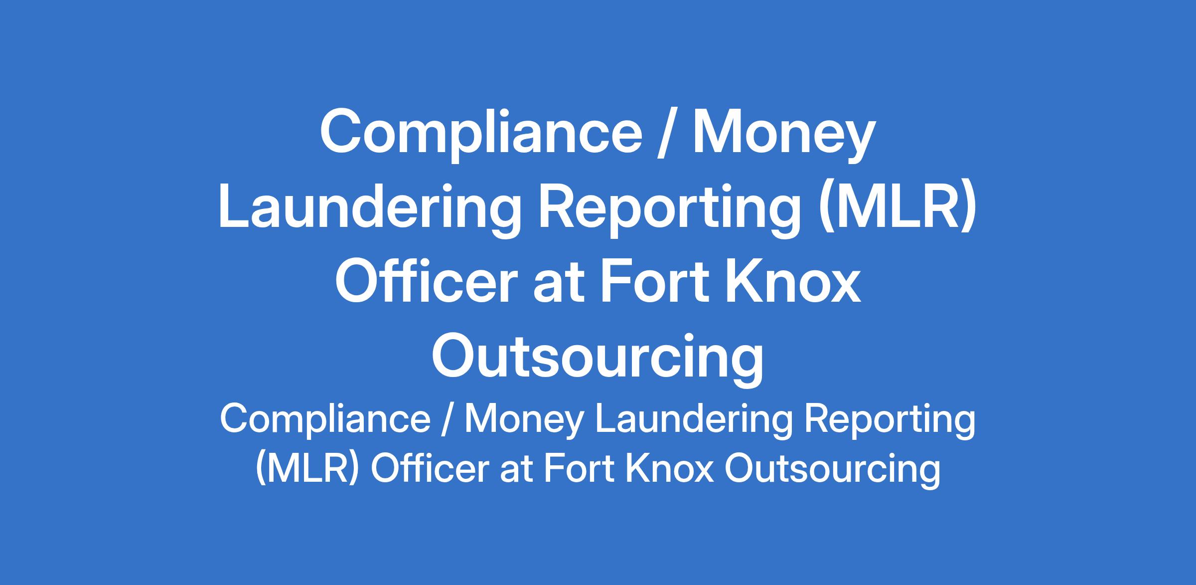 Fort Knox Outsourcing is recruiting to fill the position of: Compliance / Money Laundering Reporting (MLR) Officer. The position is located in Lagos State. Salary Range: N350,000 N450,000 monthly. Interested candidates should possess a Bachelors Degree in Law, Accounting, Finance, Business Administration, or a related field with 35 years experience in compliance, AML, or regulatory roles.