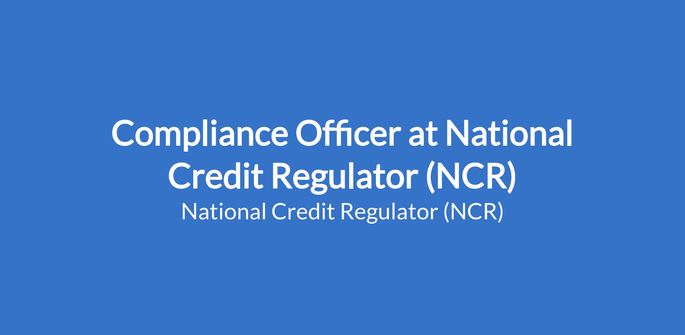The successful candidate will be responsible for monitoring compliance with the National Credit Act