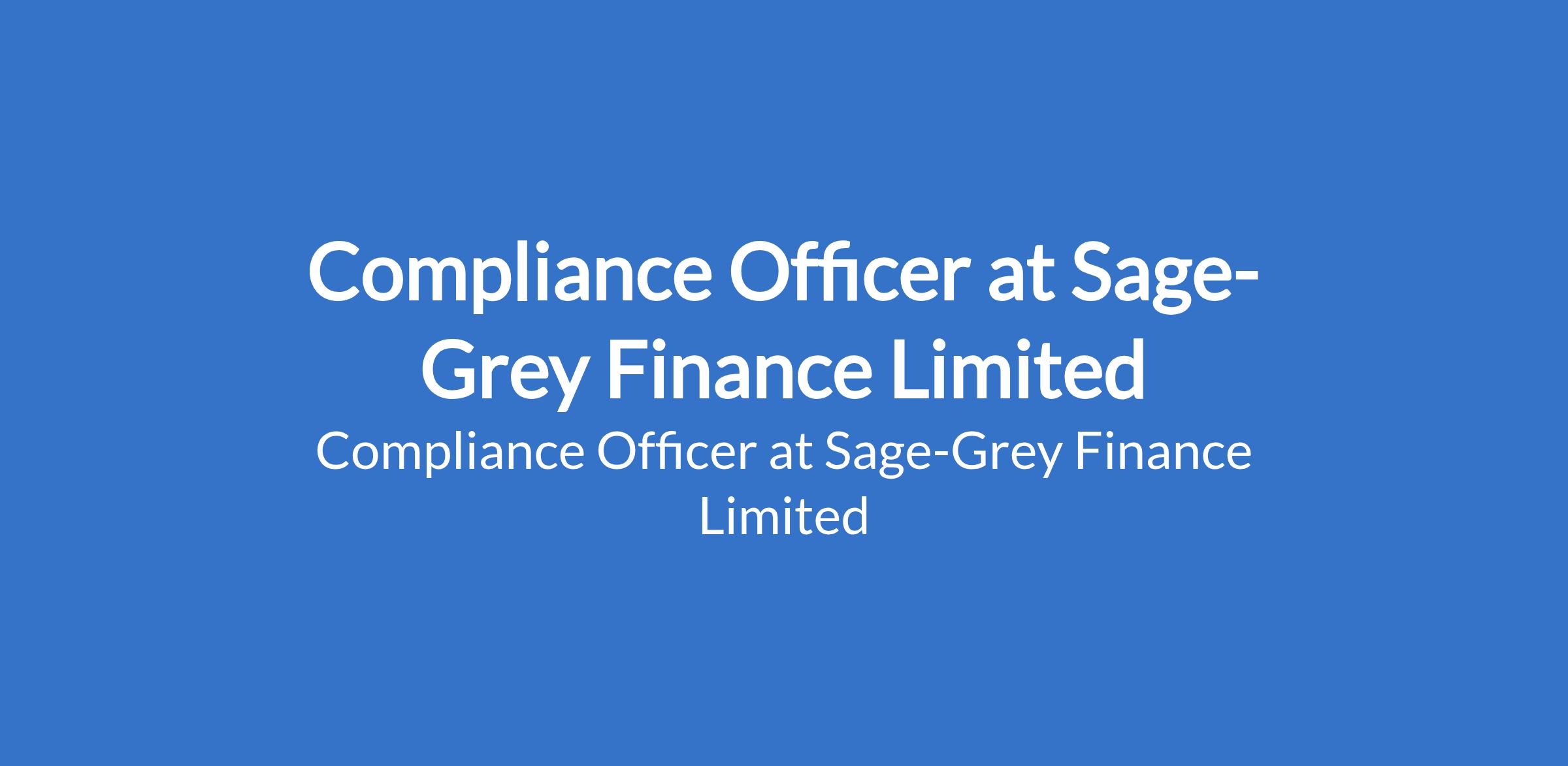 Sage-Grey Finance Limited is recruiting to fill the position of: Compliance Officer. The position is located in Lagos State. Interested candidates should possess a minimum of a Bachelors degree in Law, Finance, Accounting, or related field with 1 2 years relevant experience in compliance, risk, or audit within financial services.