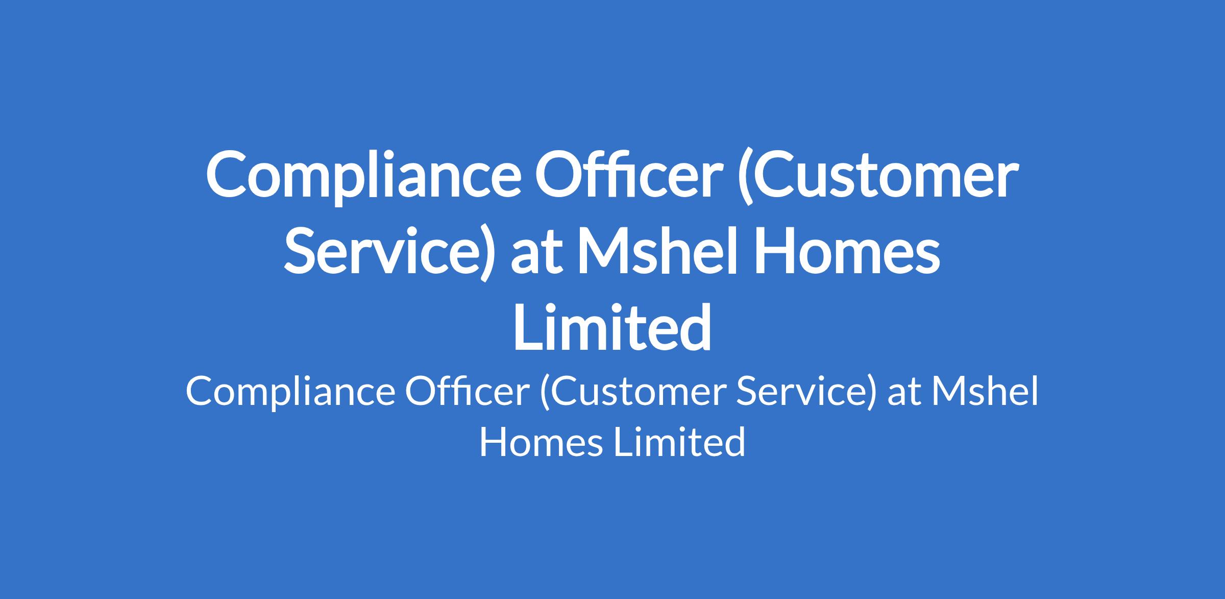 Mshel Homes Limited is recruiting to fill the position of: Compliance Officer (Customer Service). The position is located in Abuja. Salary: N150,000 - N200,000 monthly. Interested candidates should possess a Bachelor's Degree in Law, Business Administration, Estate Management, Public Administration, or a related field with 4 years of experience in compliance, regulatory affairs, or customer service management.