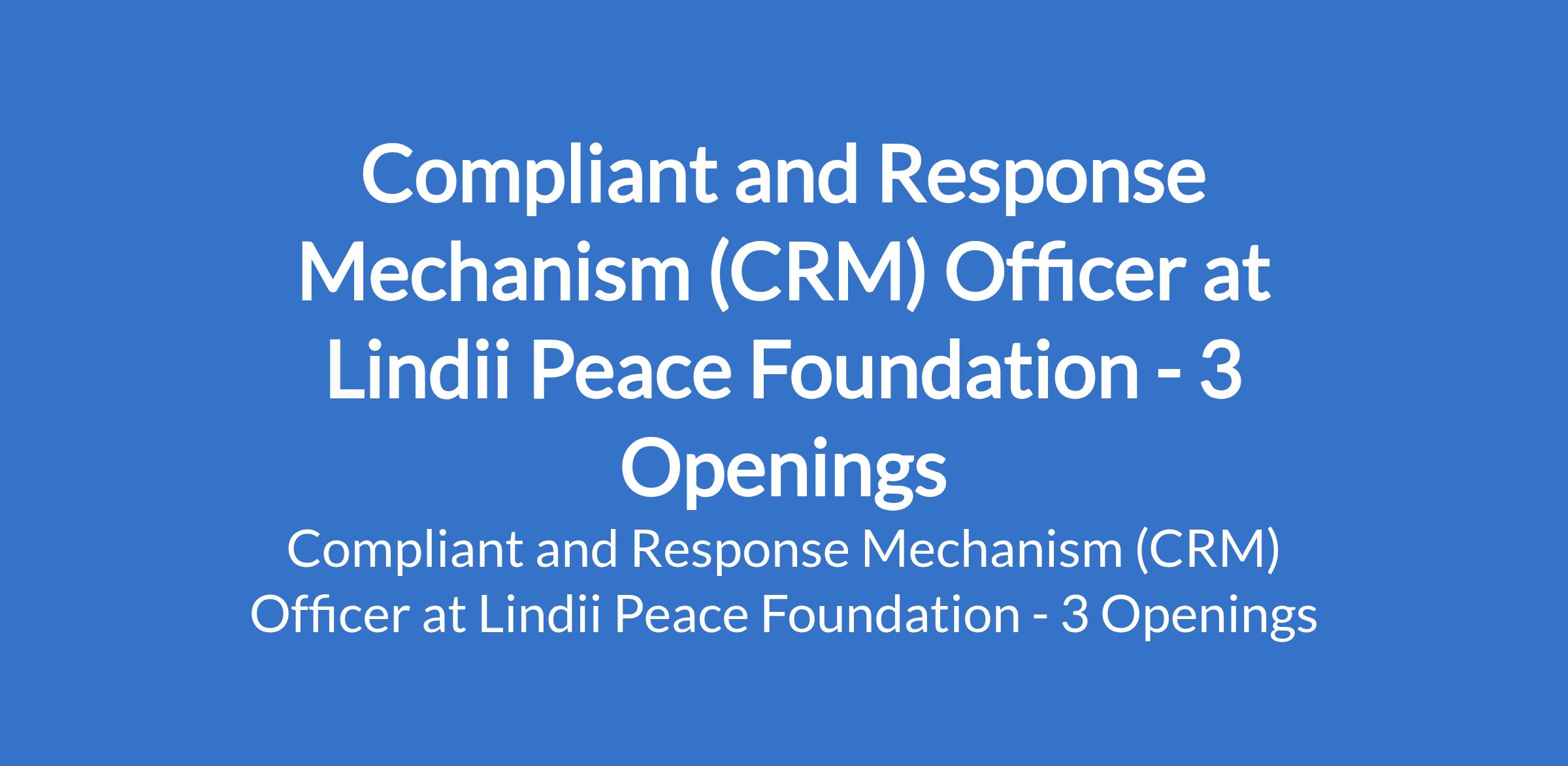 Lindii Peace Foundation is recruiting to fill the position of: Compliant and Response Mechanism (CRM) Officer. The position is located in Kaga, Dikwa and Konduga - Borno State. Interested candidates should possess a Bachelor's Degree in Management, Social Research, and Development Studies or a related field or comparable addition to experience, with a minimum of 3 years proven experience in accountability especially accountability to affected populations (AAP) feedback mechanisms concepts and international humanitarian quality standards (CHS, Do No Harm).