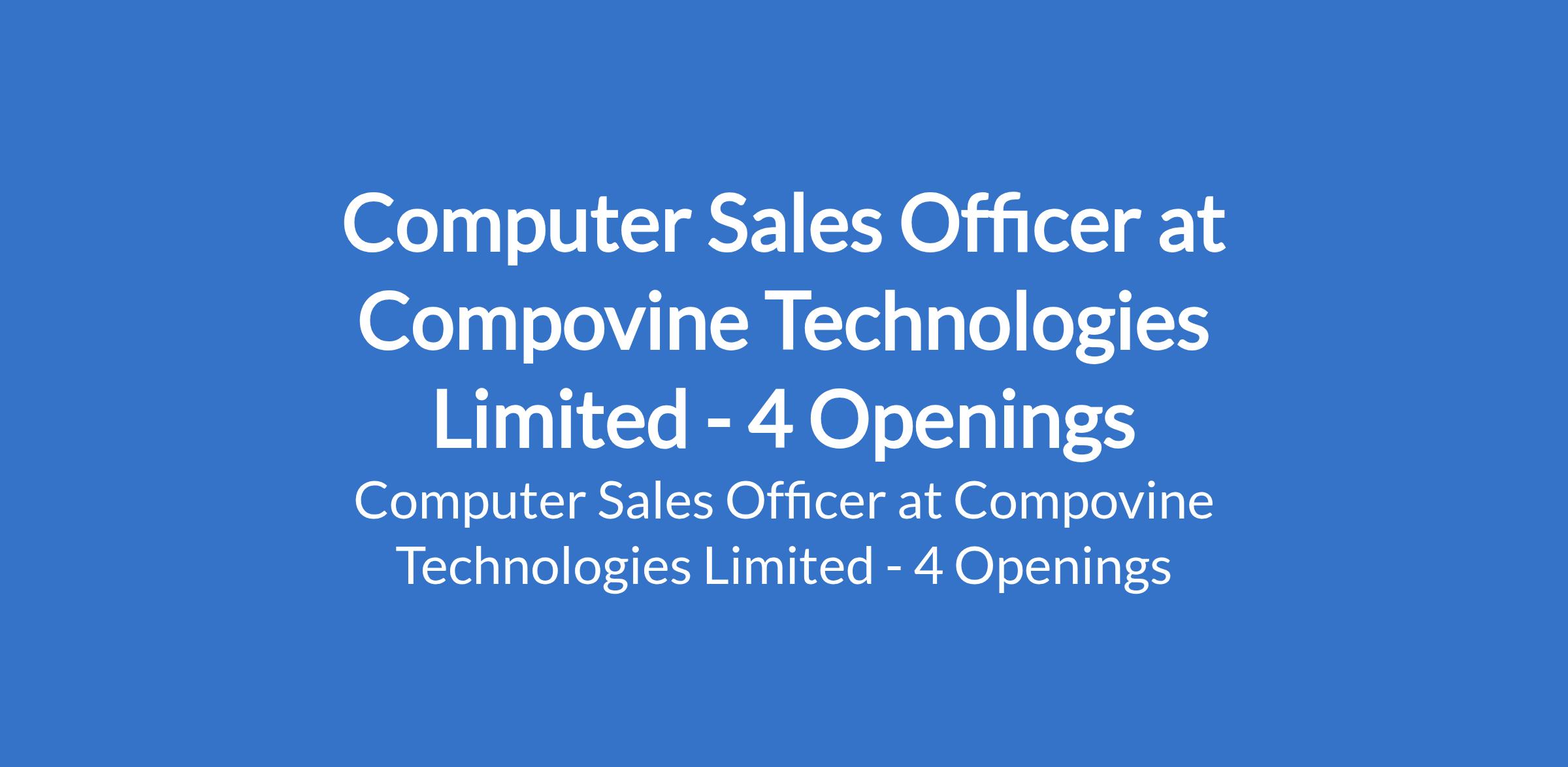 Computer Sales Officer at Compovine Technologies Limited - 4 Openings