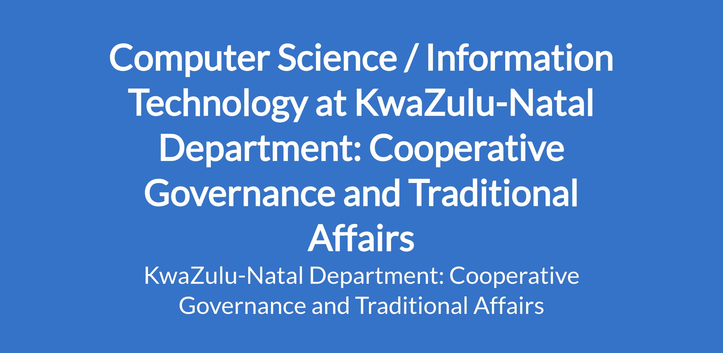 Computer Science / Information Technology at KwaZulu-Natal Department: Cooperative Governance and Traditional Affairs