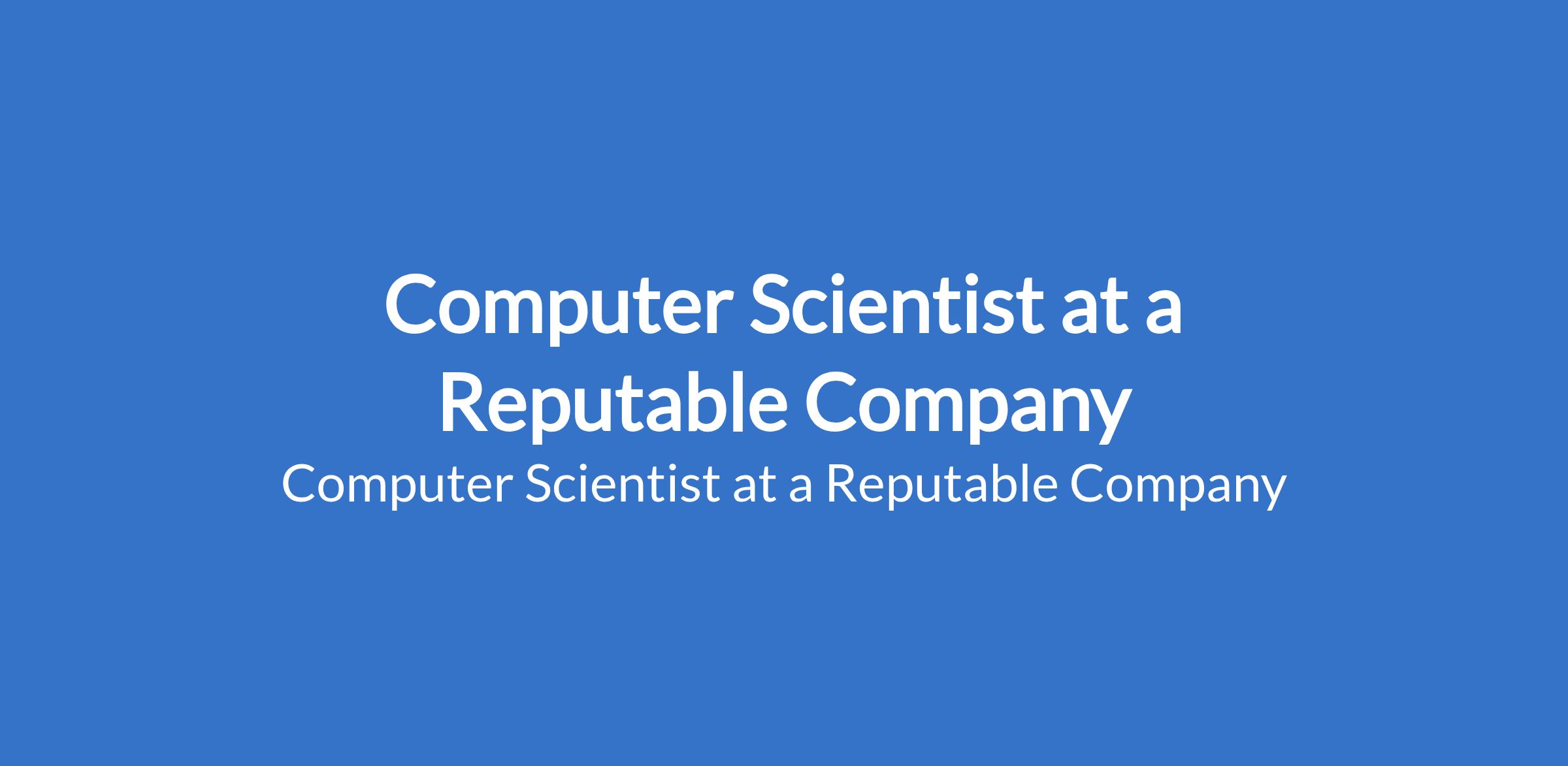 Computer Scientist at a Reputable Company