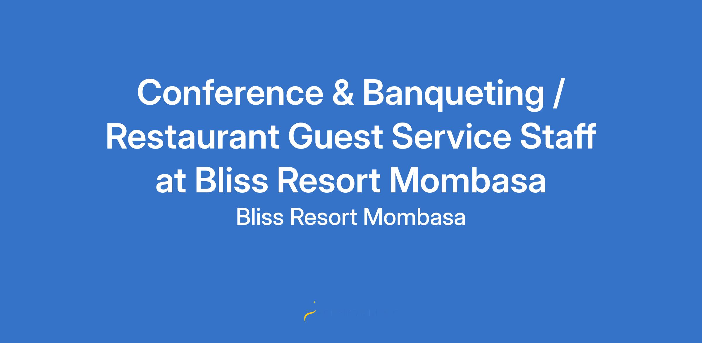 Conference & Banqueting / Restaurant Guest Service Staff at Bliss Resort Mombasa