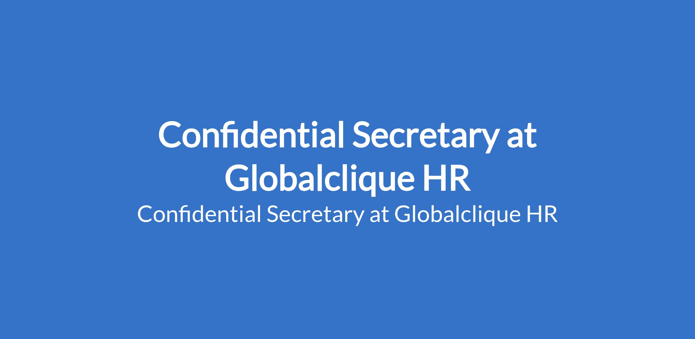 Globalclique HR is recruiting to fill the position of: Confidential Secretary. The position is located in Lagos Island, Lagos State. Salary: N200,000 - N300,000 per month. Interested candidates should possess a minimum of OND / HND / Bachelors Degree in Secretarial Studies, Business Administration, or related fields.
