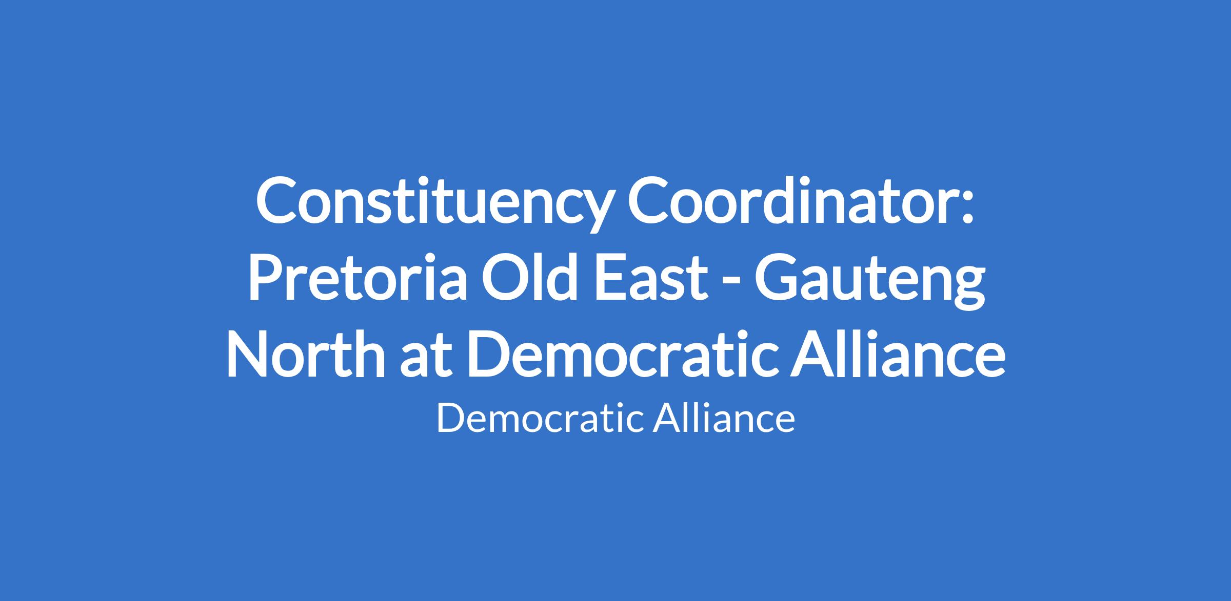 Constituency Coordinator: Pretoria Old East - Gauteng North at Democratic Alliance