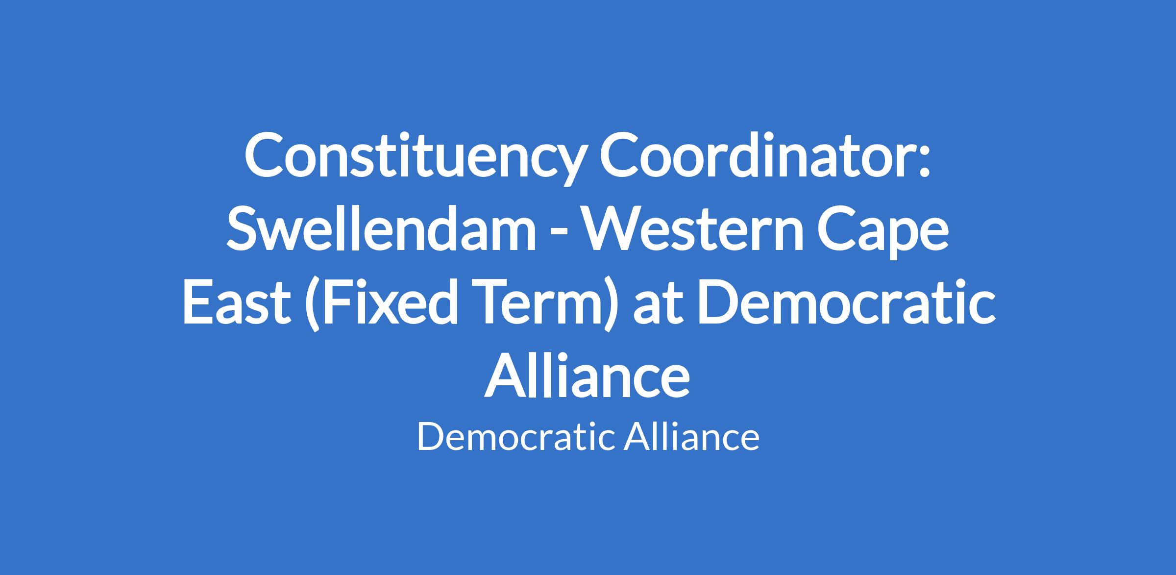 Constituency Coordinator: Swellendam - Western Cape East (Fixed Term) at Democratic Alliance