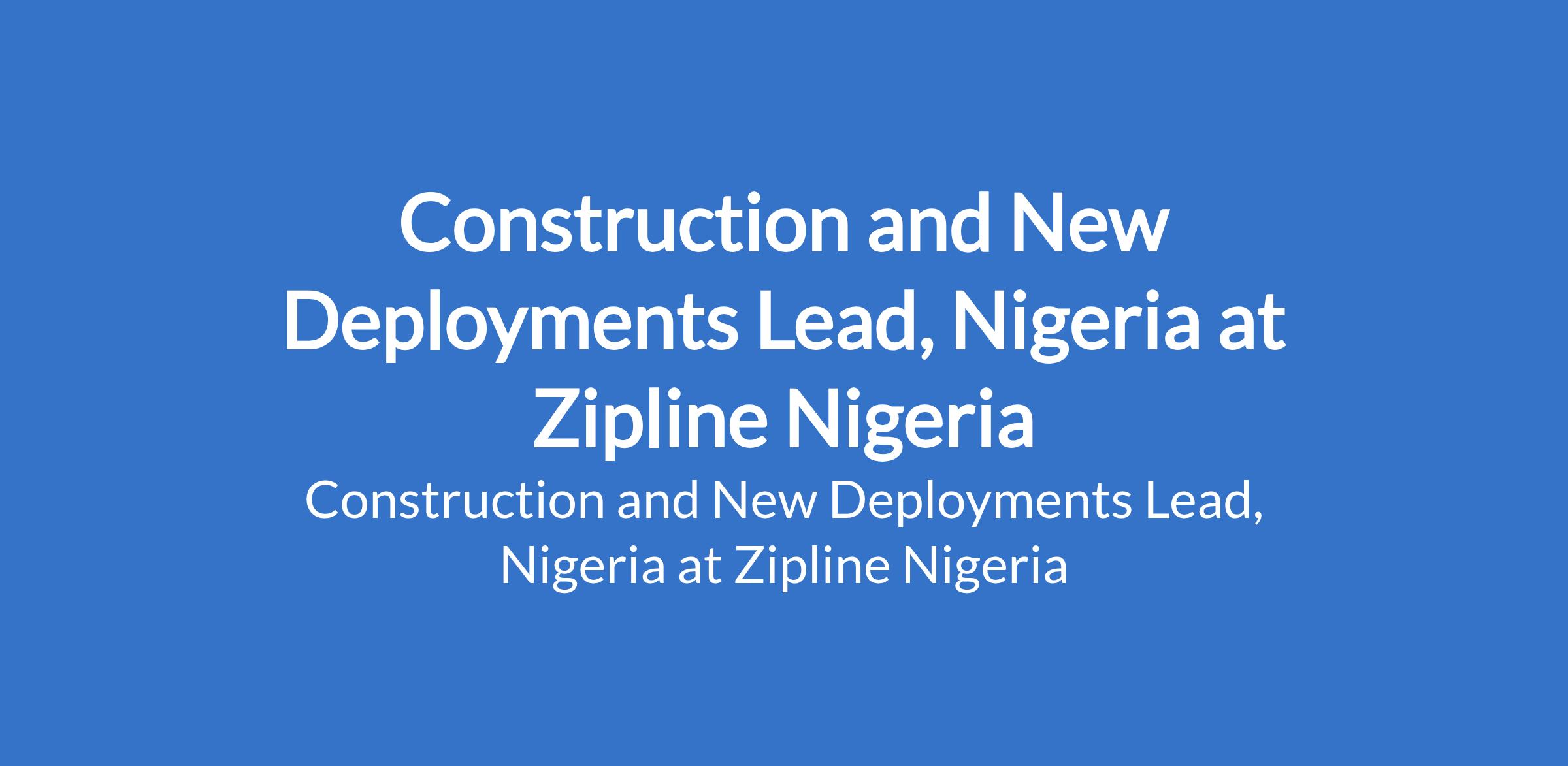 Zipline Nigeria is recruiting to fill the position of: Construction and New Deployments Lead, Nigeria. The position is located in Lagos State. Interested candidates should possess relevant qualifications with 8+ years of experience in construction, engineering, or program management, including at least 3 years in a leadership role.