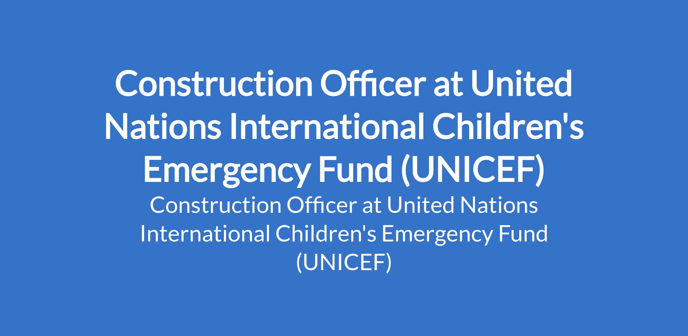 United Nations International Children's Emergency Fund (UNICEF) is recruiting to fill the position of: Construction Officer. The position is located in Kano State. Interested candidates should possess a first university Degree in Structural Engineering, Civil Engineering, Construction Management, Architecture, or a related technical field with a minimum of two (2) years of progressively responsible professional experience in construction project management and operation, with demonstrated expertise in structural design, analysis, and supervision of infrastructure projects.