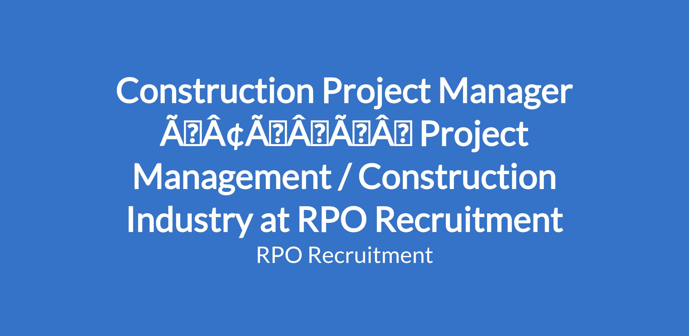 Construction Project Manager âÃÂàProject Management / Construction Industry at RPO Recruitment