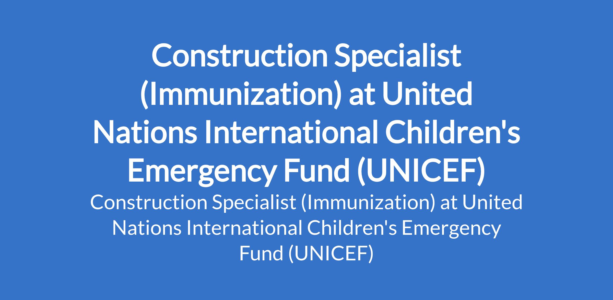 United Nations International Children's Emergency Fund (UNICEF) is recruiting to fill the position of: Construction Specialist (Immunization). The position is located in Abuja. Interested candidates should possess an advanced university degree (Masters or equivalent) in Structural Engineering, Civil Engineering, Construction Management, Architecture, or a related technical field with a minimum of five (5) years of progressively responsible professional experience in construction project management and operation, with demonstrated expertise in structural design, analysis, and supervision of infrastructure projects; A first-level University Degree with additional two-year of relevant experience may be accepted in lieu of an advanced degree.