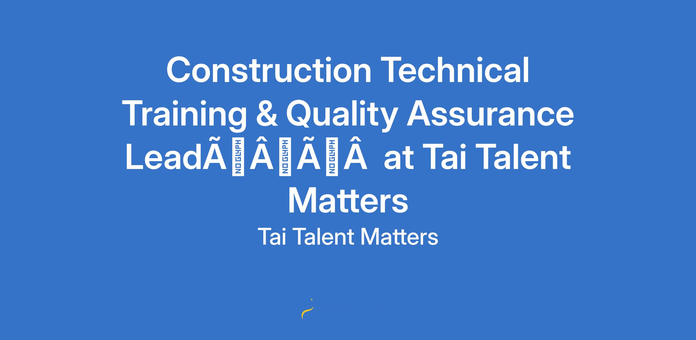 Construction Technical Training & Quality Assurance LeadÃÂà at Tai Talent Matters