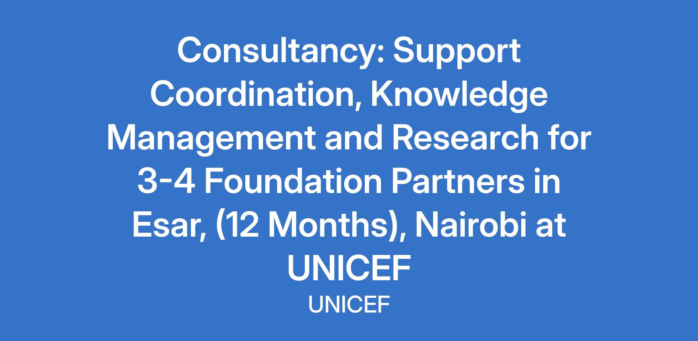 Consultancy: Support Coordination, Knowledge Management and Research for 3-4 Foundation Partners in Esar, (12 Months), Nairobi at UNICEF