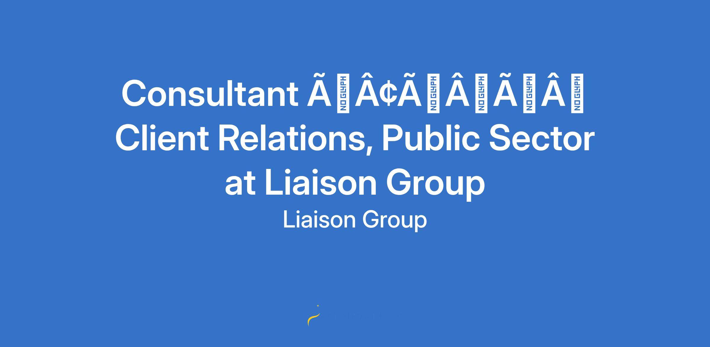 Consultant âÃÂàClient Relations, Public Sector at Liaison Group