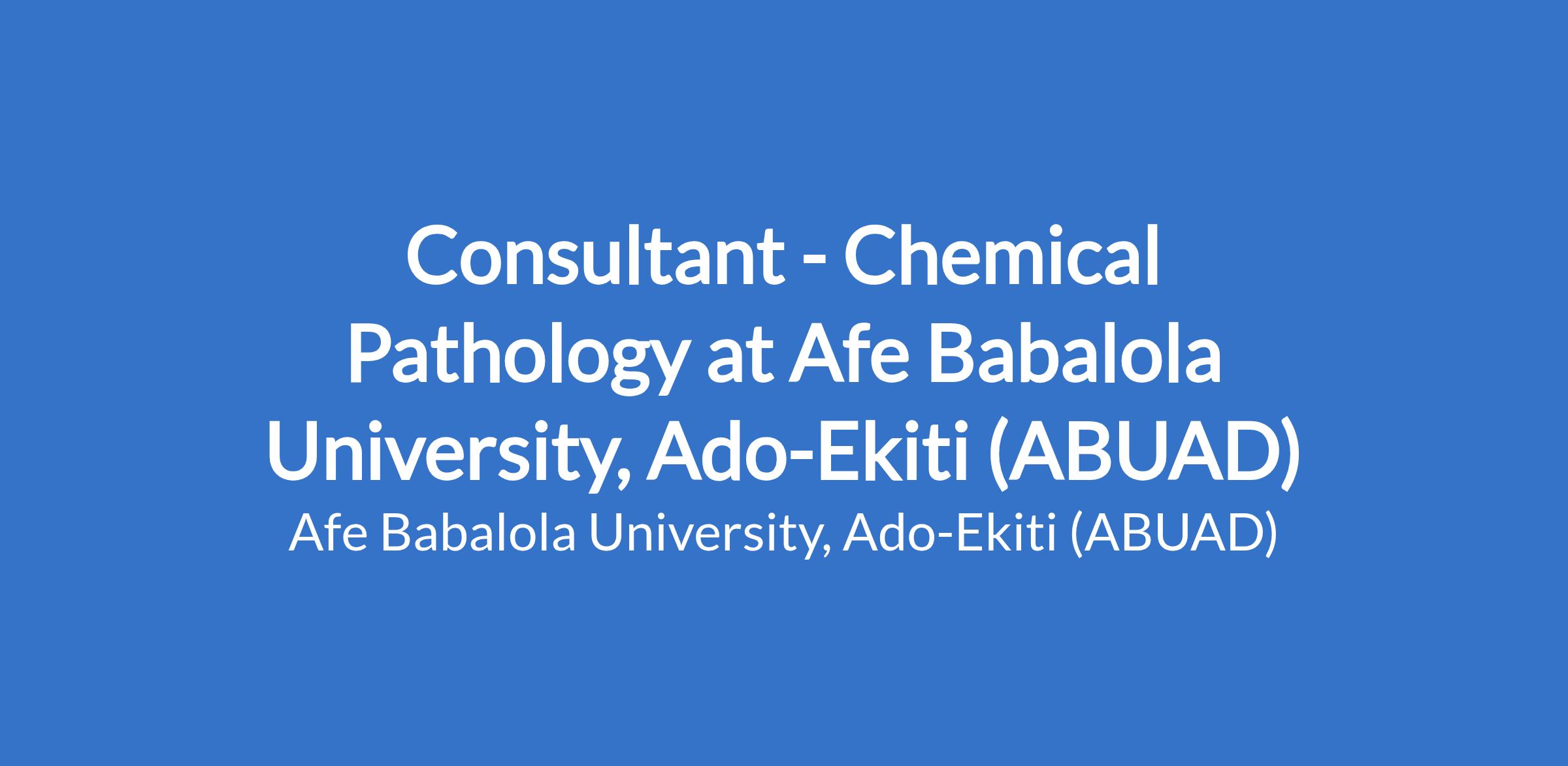 Consultant - Chemical Pathology at Afe Babalola University, Ado-Ekiti (ABUAD)