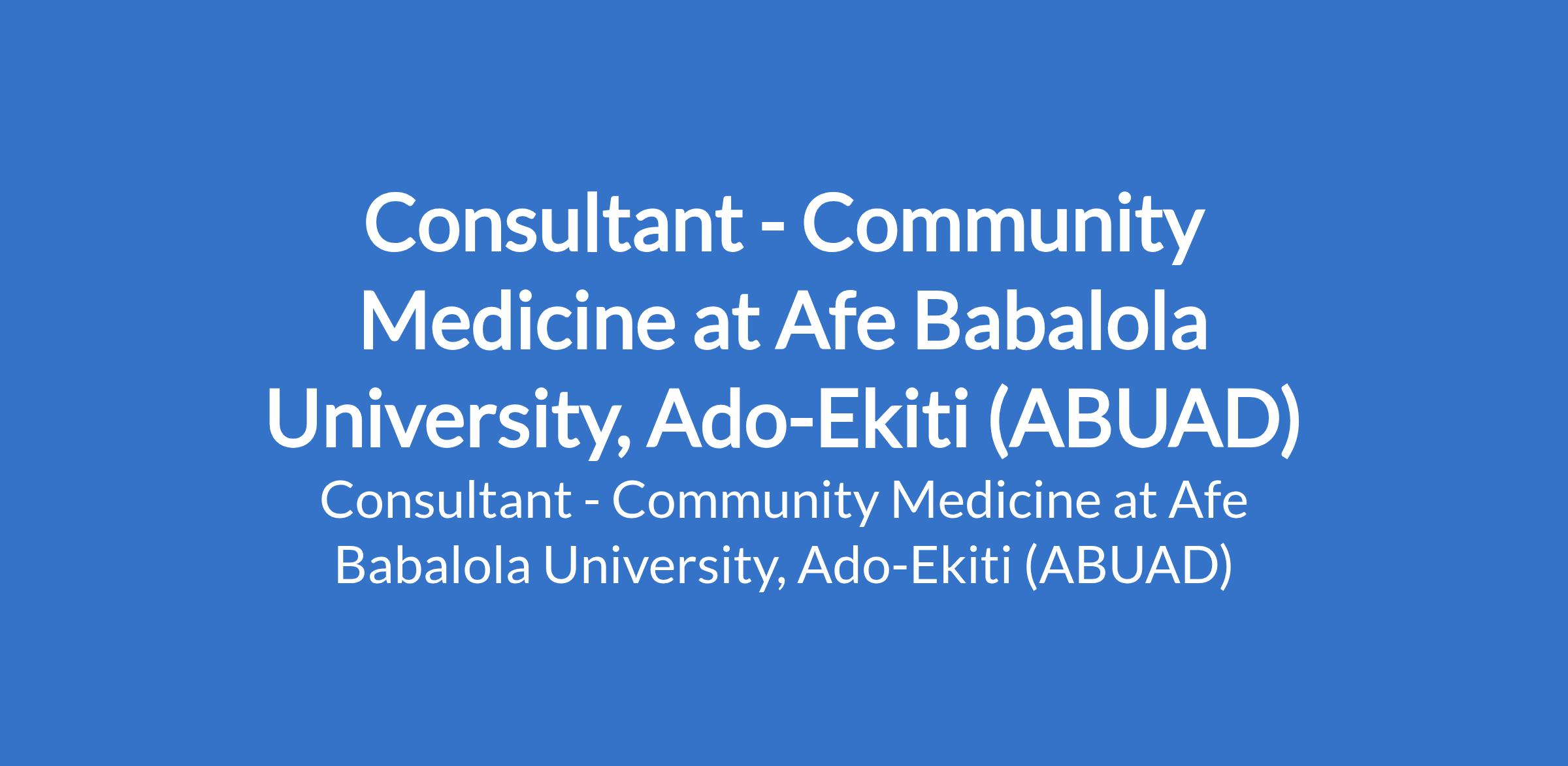 Consultant - Community Medicine at Afe Babalola University, Ado-Ekiti (ABUAD)