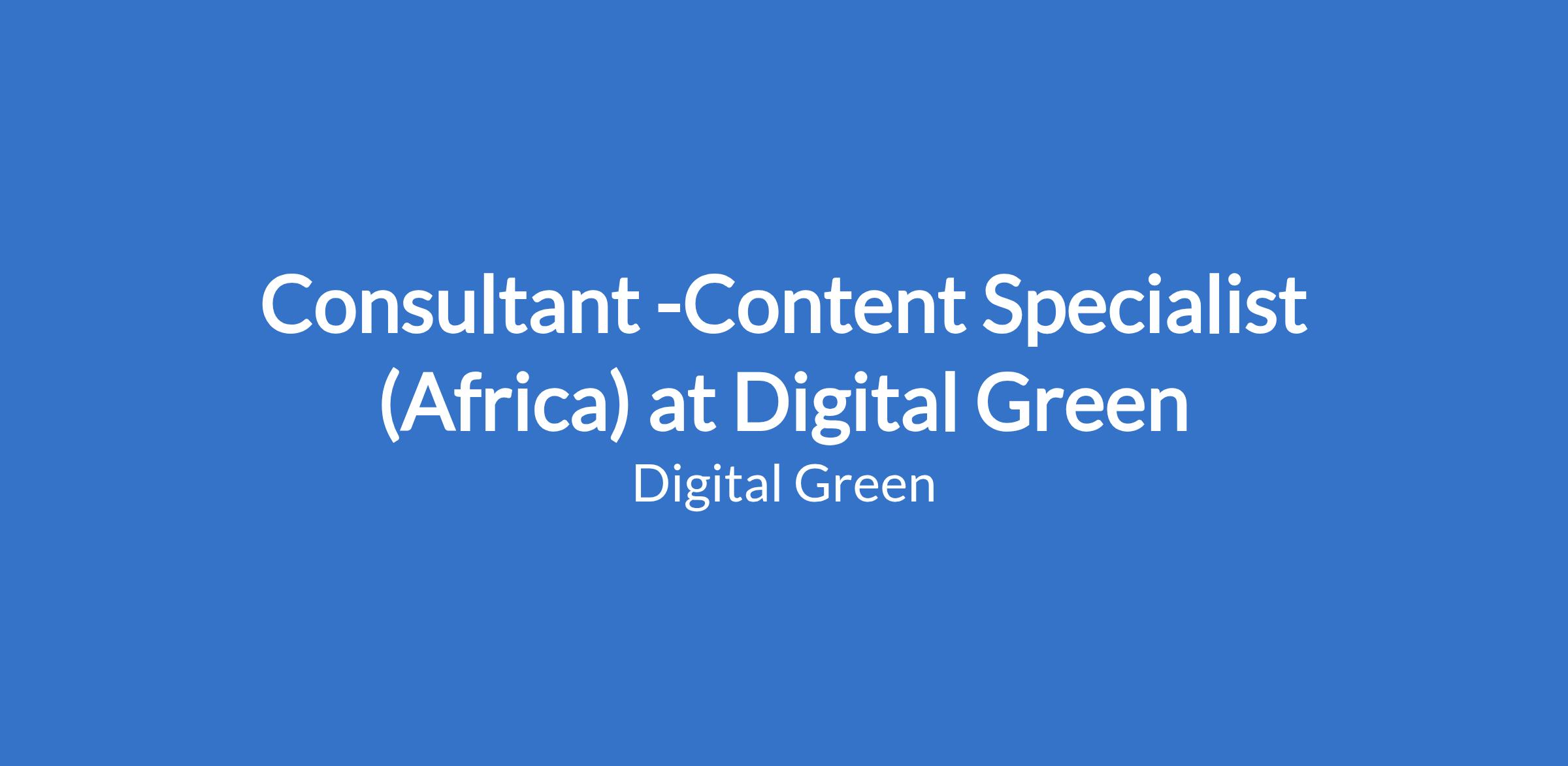 Consultant -Content Specialist (Africa) at Digital Green