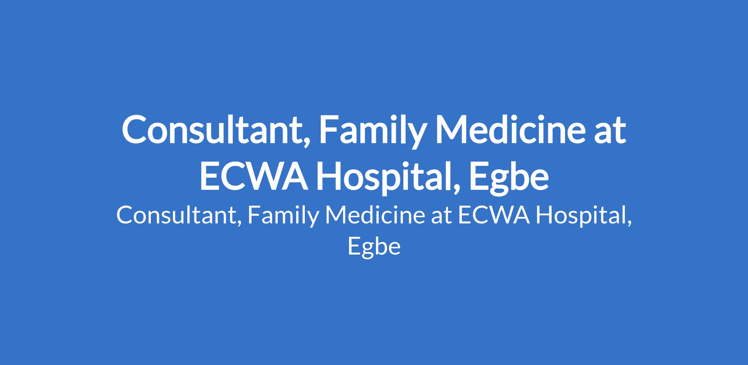 ECWA Hospital, Egbe is recruiting to fill the position of: Consultant, Family Medicine. The position is located in Kogi State. Interested candidates should possess an M.B.B.S. with a minimum of 3 years licensed experience in Family Medicine within recognized medical practices.