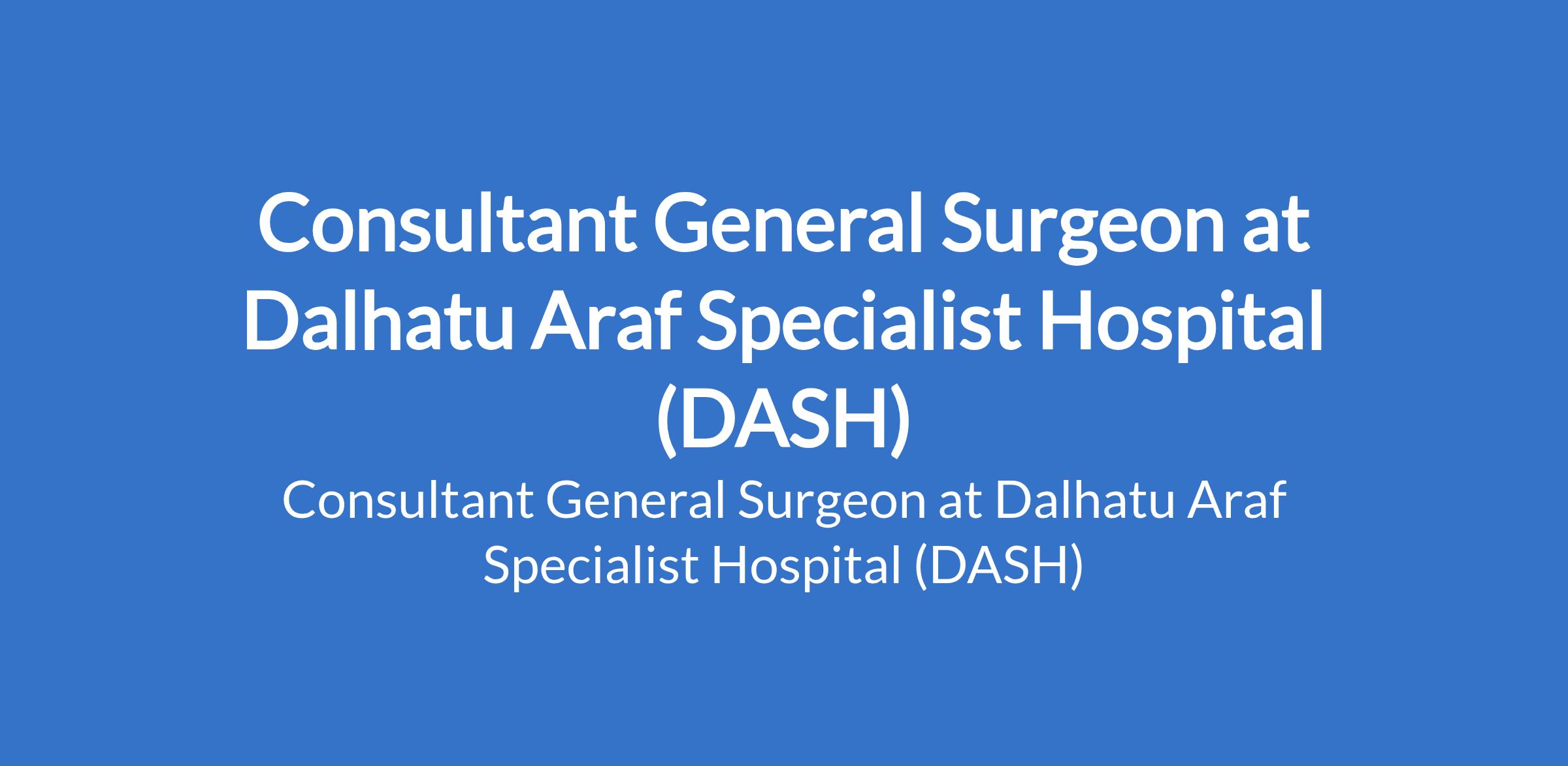 Dalhatu Araf Specialist Hospital (DASH) is recruiting to fill the position of: Consultant General Surgeon. The position is located in Nasarawa State. Interested candidates should possess an MBBS Degree certificate and a relevant membership certificate from the National Postgraduate Medical College of Nigeria or the West African College of Physicians or Surgeons.