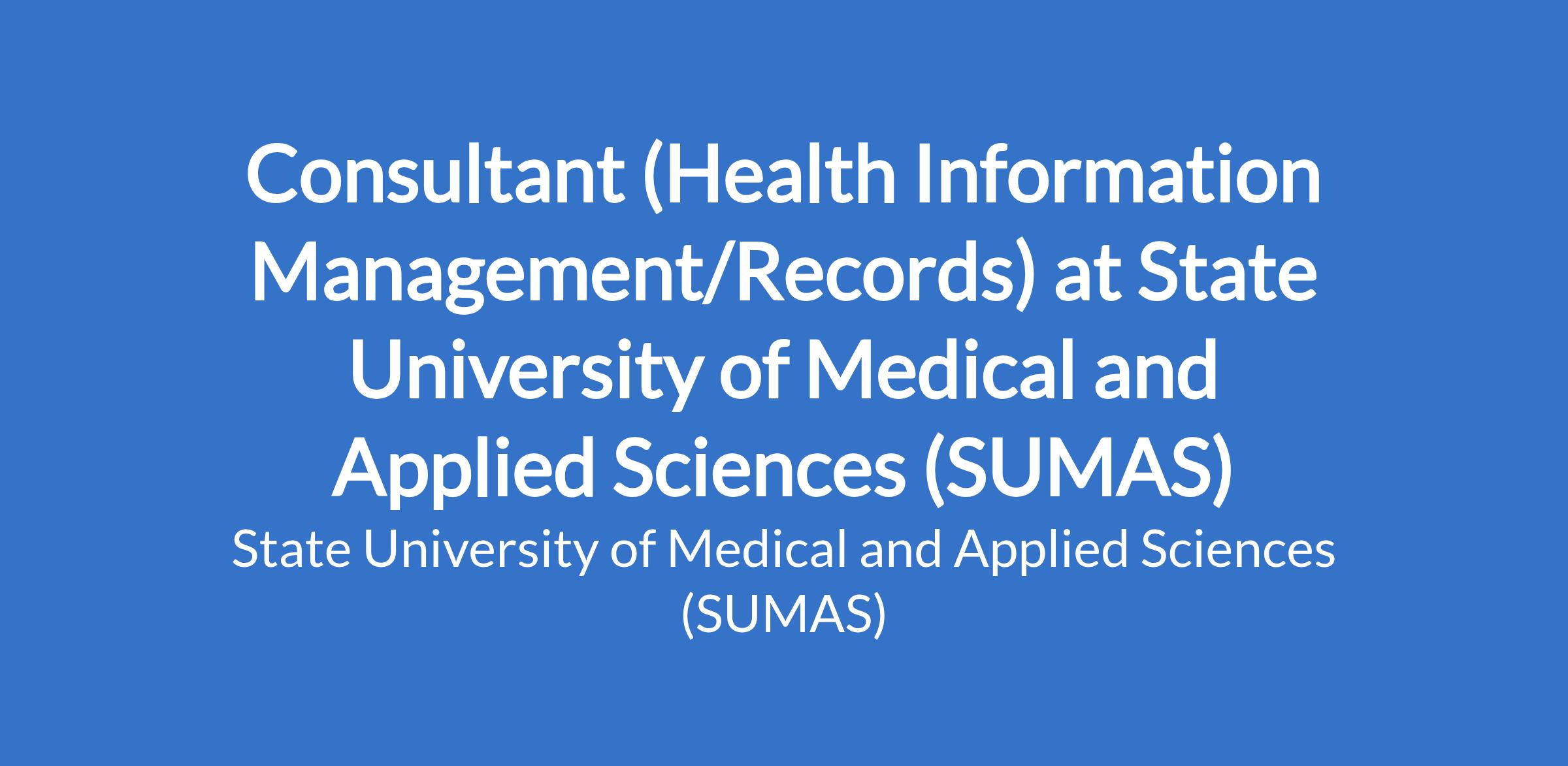 Consultant (Health Information Management/Records) at State University of Medical and Applied Sciences (SUMAS)