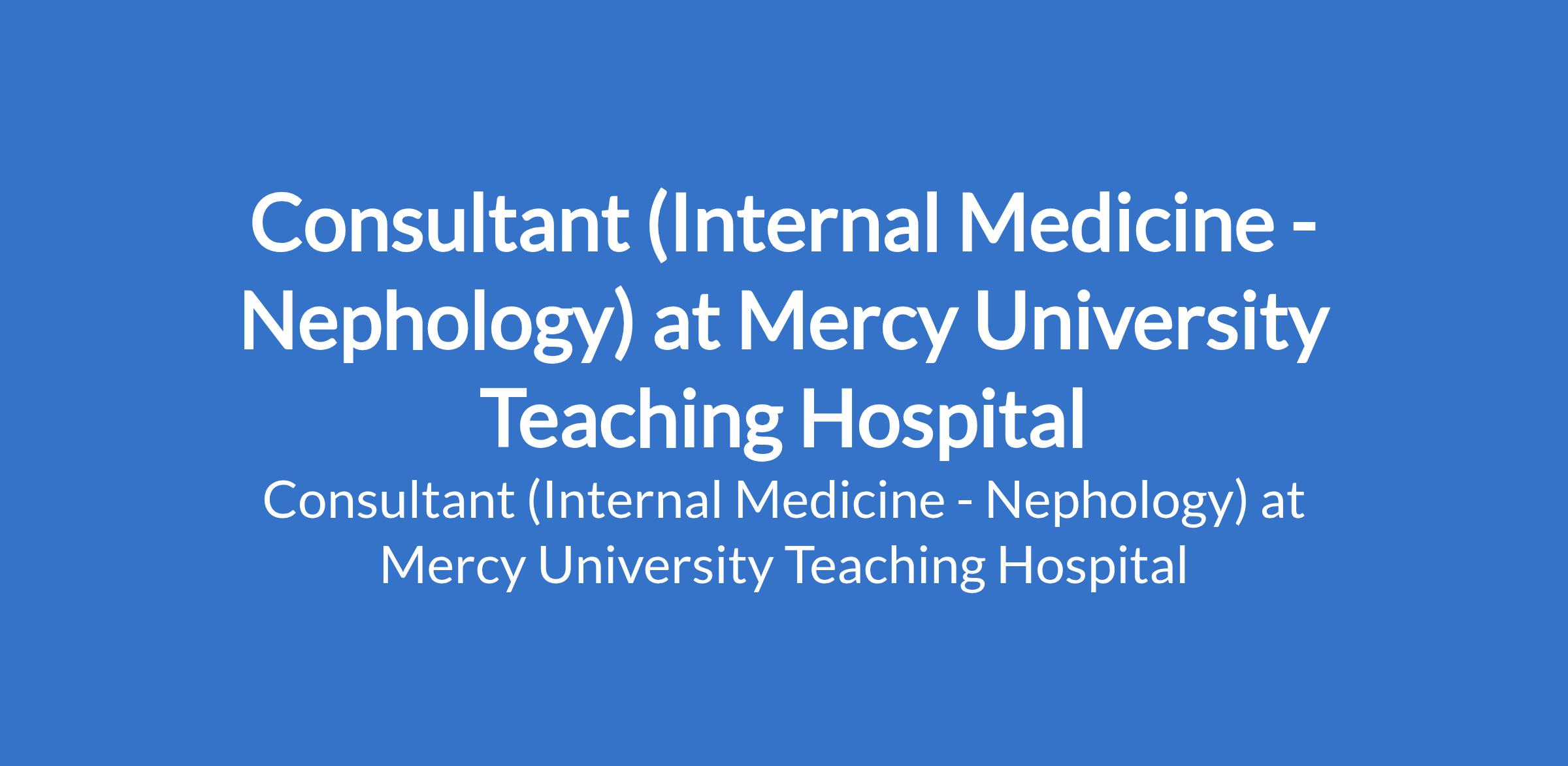 Mercy University Teaching Hospital invites applications from suitable candidates to fill the position of: Consultant (Internal Medicine - Nephology). The position is located in Ile-Idande, Osogbo - Osun State. Interested candidates must be fully registered with the Medical and Dental Council of Nigeria, possess NYSC completion or exemption certificate and must be a fellow of either West African College of Surgeon or National Postgraduate Medical College of Nigeria or equivalent.