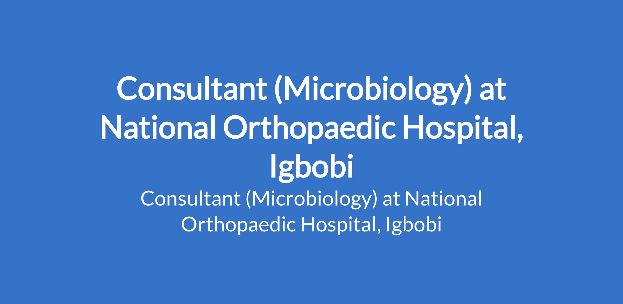 National Orthopaedic Hospital, Igbobi invites applications from suitable candidates to fill the position of: Consultant (Microbiology). Interested candidates should possess an MBBS / MBch.B Certificate and NYSC Discharge or Exemption Certificate and must have Fellowship of the National Postgraduate Medical College of Nigeria or the West African College of Physicians in Heamatology and a current practicing Licence.