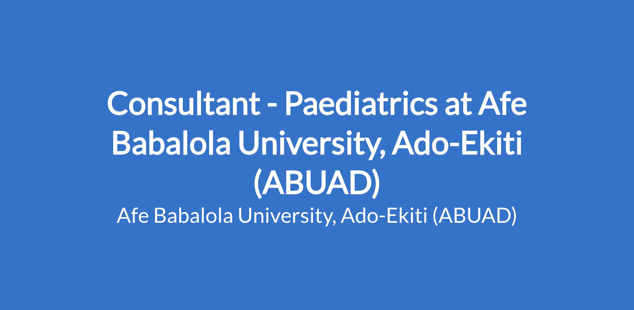 Consultant - Paediatrics at Afe Babalola University, Ado-Ekiti (ABUAD)