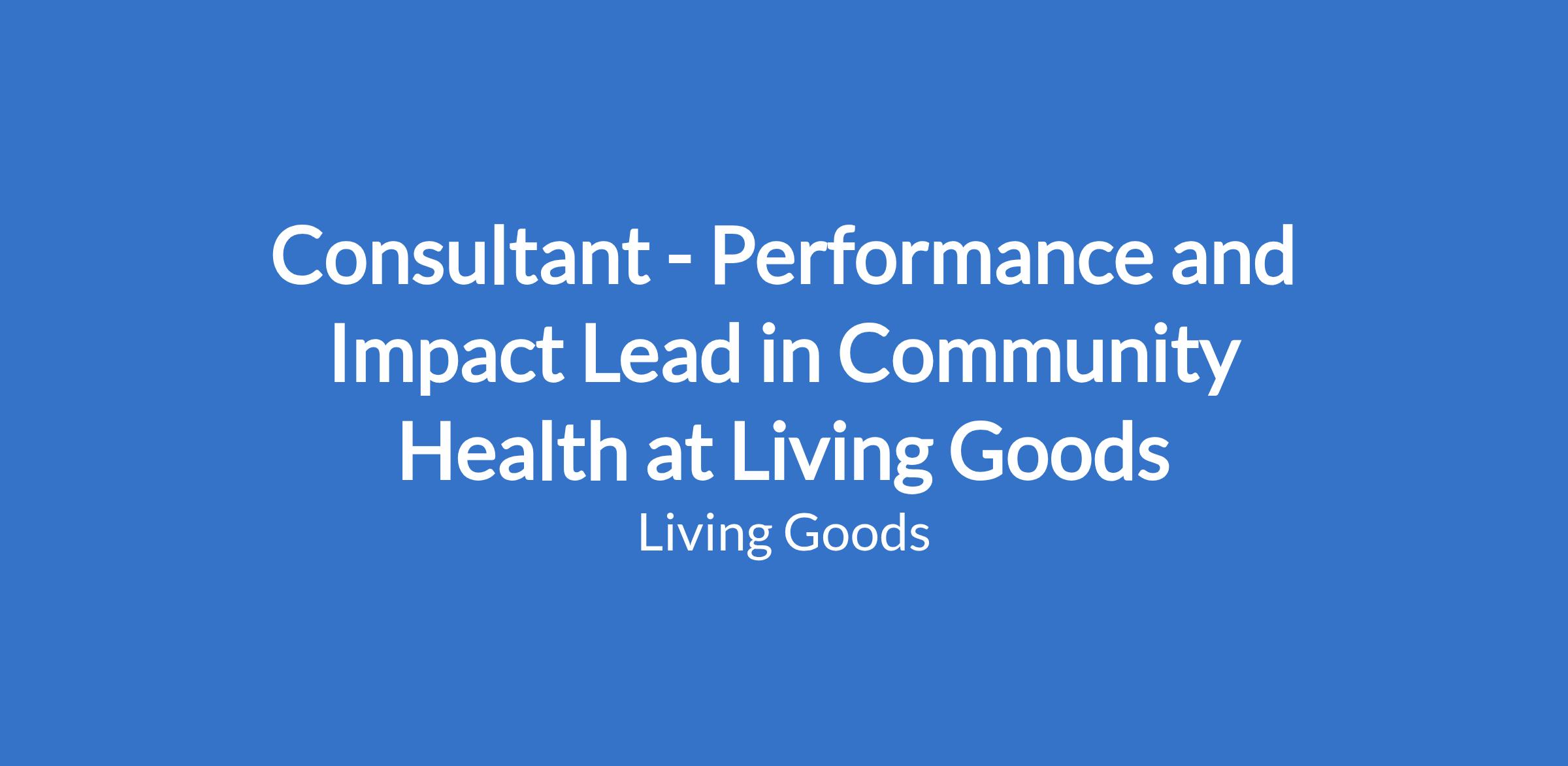 Consultant - Performance and Impact Lead in Community Health at Living Goods