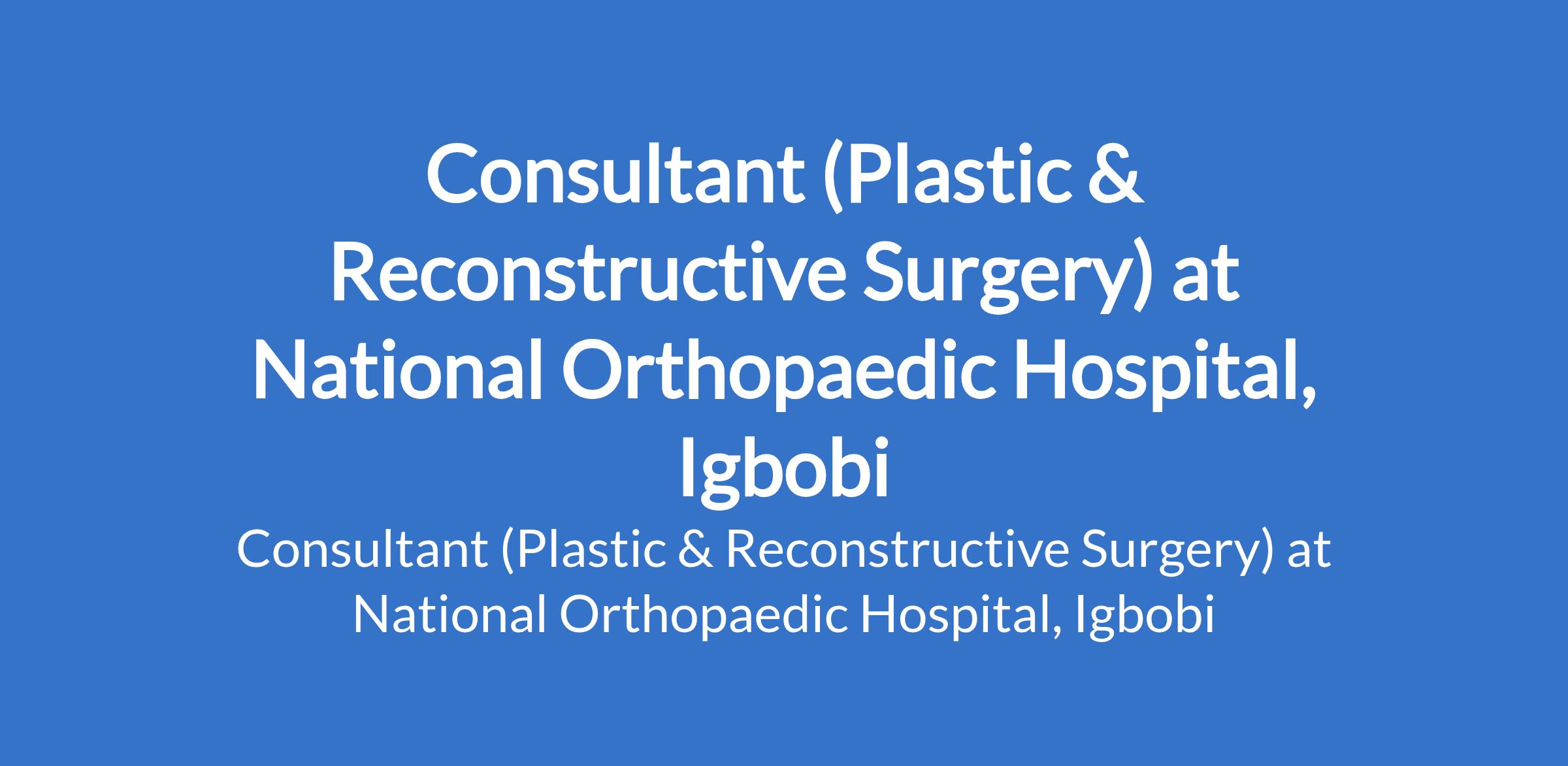 National Orthopaedic Hospital, Igbobi invites applications from suitable candidates to fill the position of: Consultant (Plastic & Reconstructive Surgery). Interested candidates must possess an MBBS / MBch.B, Part II Final Examinations Certificate of the Fellowship of the National Postgraduate Medical College of Nigeria, the West African College of Surgeons, or its equivalent in Plastic & Reconstructive Surgery.