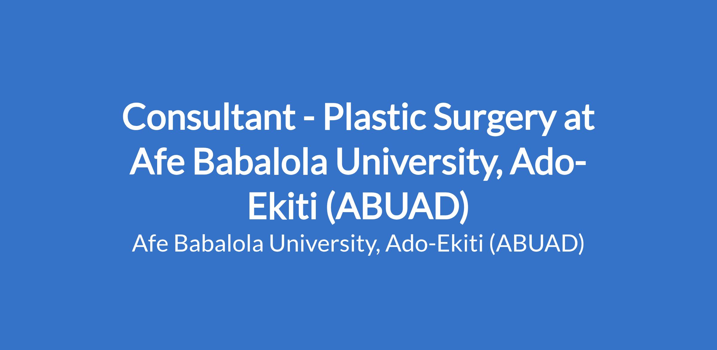Consultant - Plastic Surgery at Afe Babalola University, Ado-Ekiti (ABUAD)