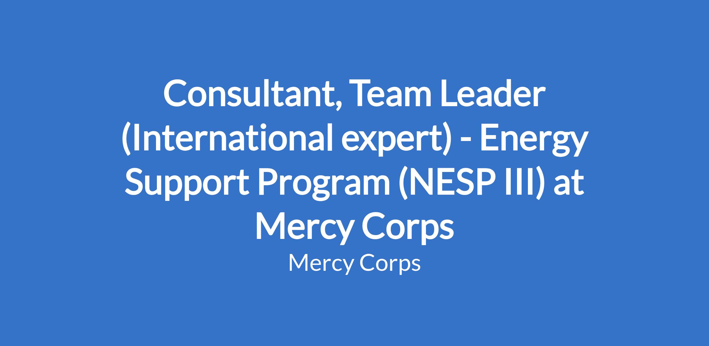 Consultant, Team Leader (International expert) - Energy Support Program (NESP III) at Mercy Corps