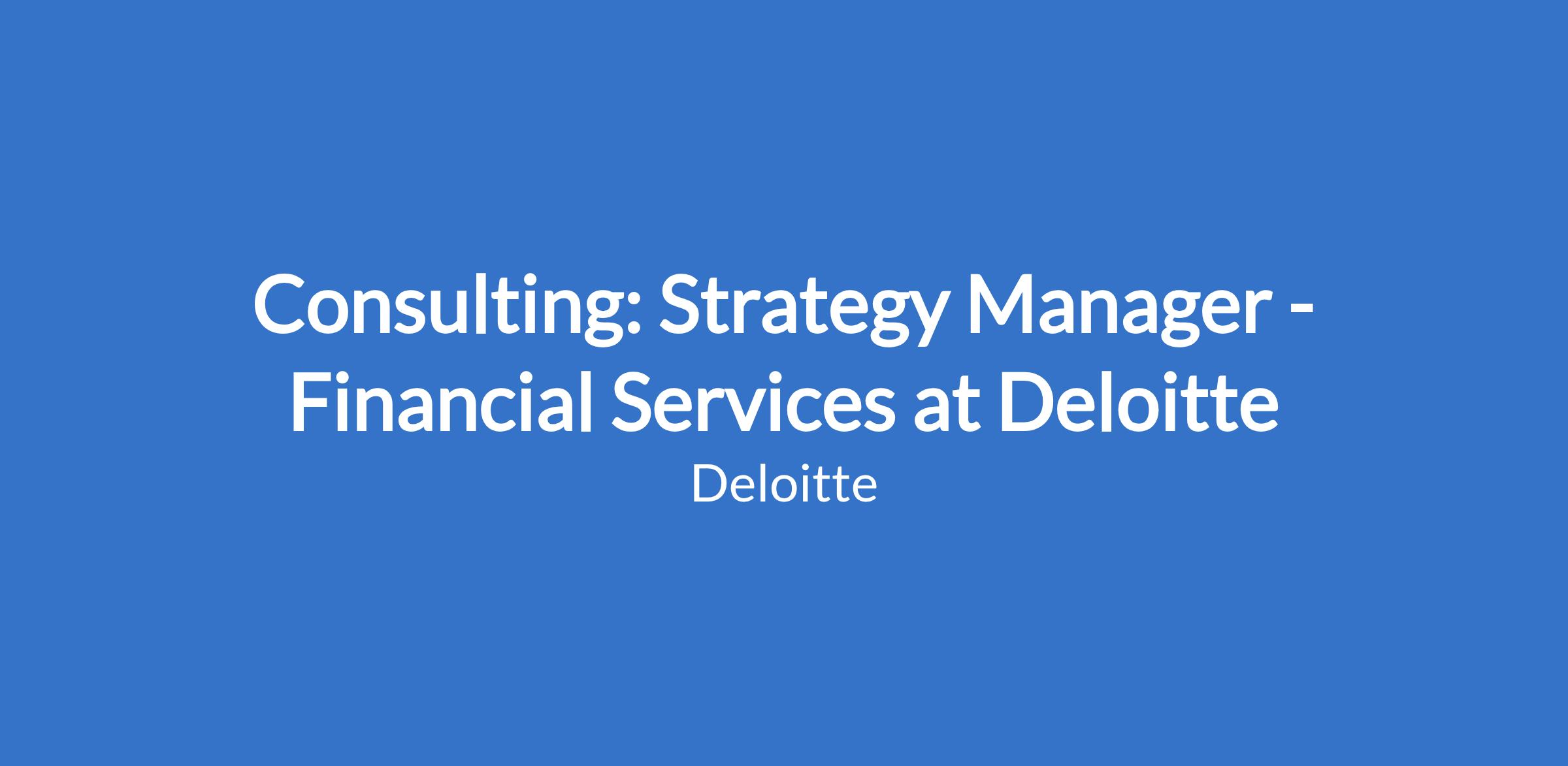 Consulting: Strategy Manager - Financial Services at Deloitte