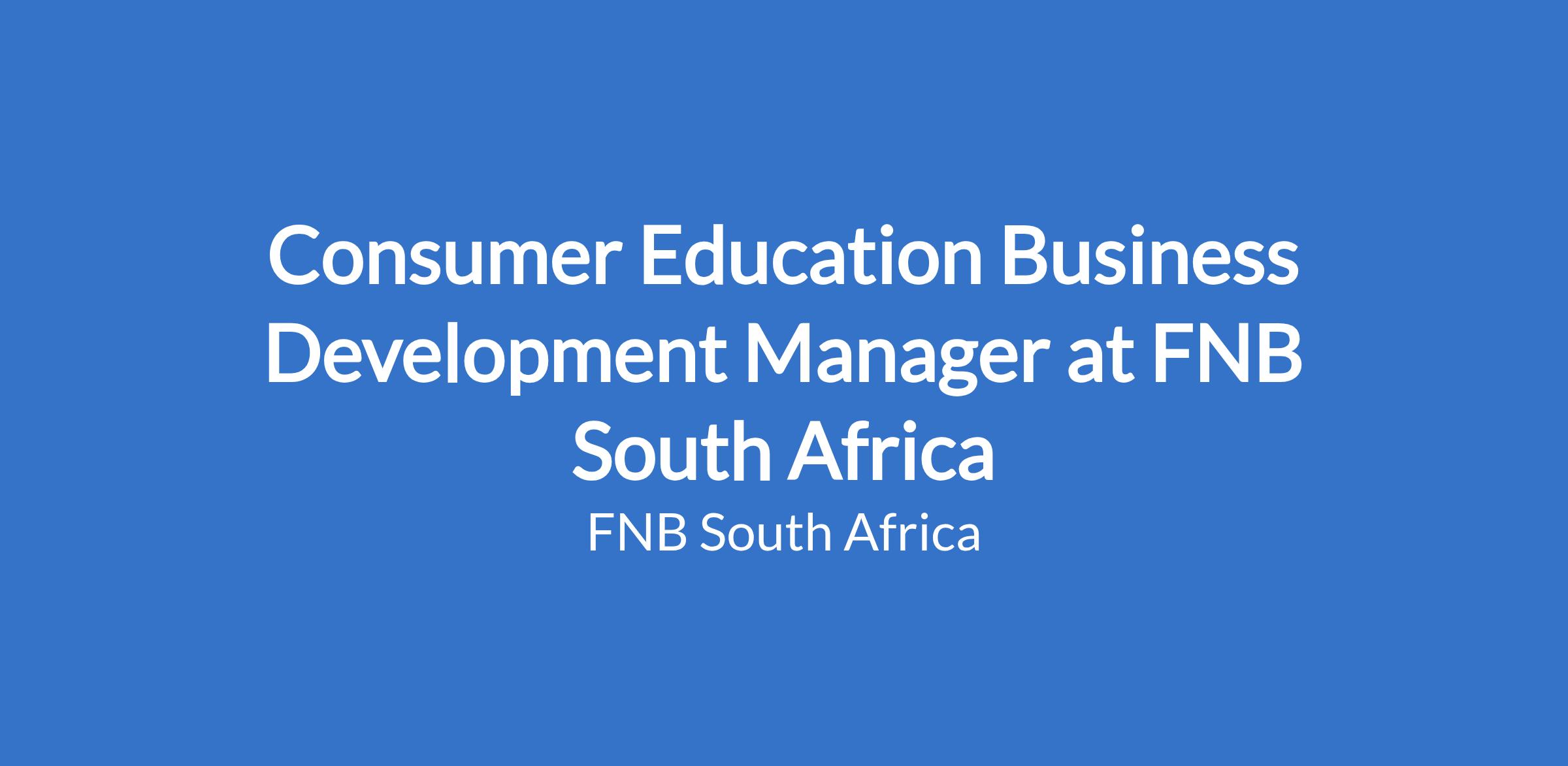 Consumer Education Business Development Manager at FNB South Africa